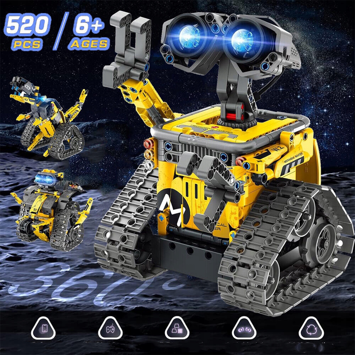 Робот с дистанционным управлением для детей WZ-8039 — 520 шт. 3 в 1 RC STEM-конструктор с приложением и дистанционным управлением Настенная/механическая игрушка-динозавр Подарки для мальчиков и девочек 6–14 (+) лет