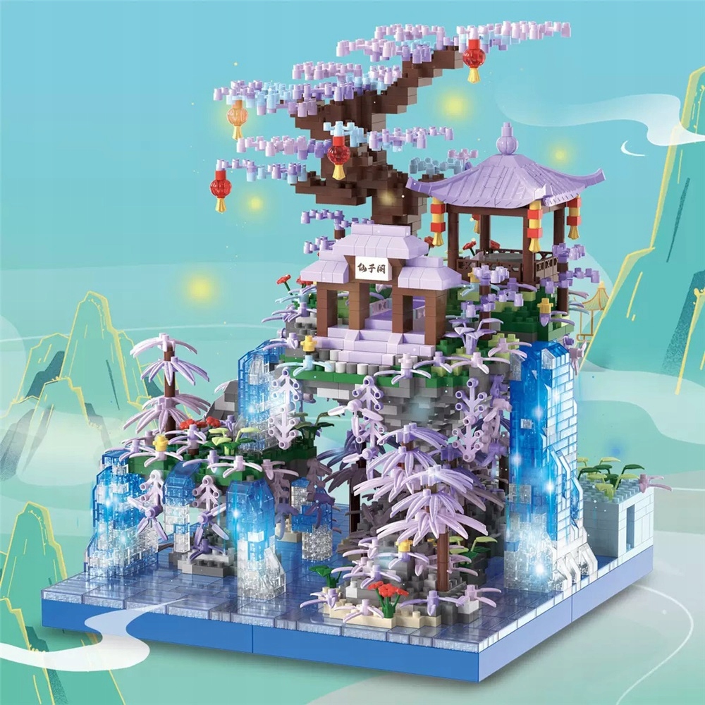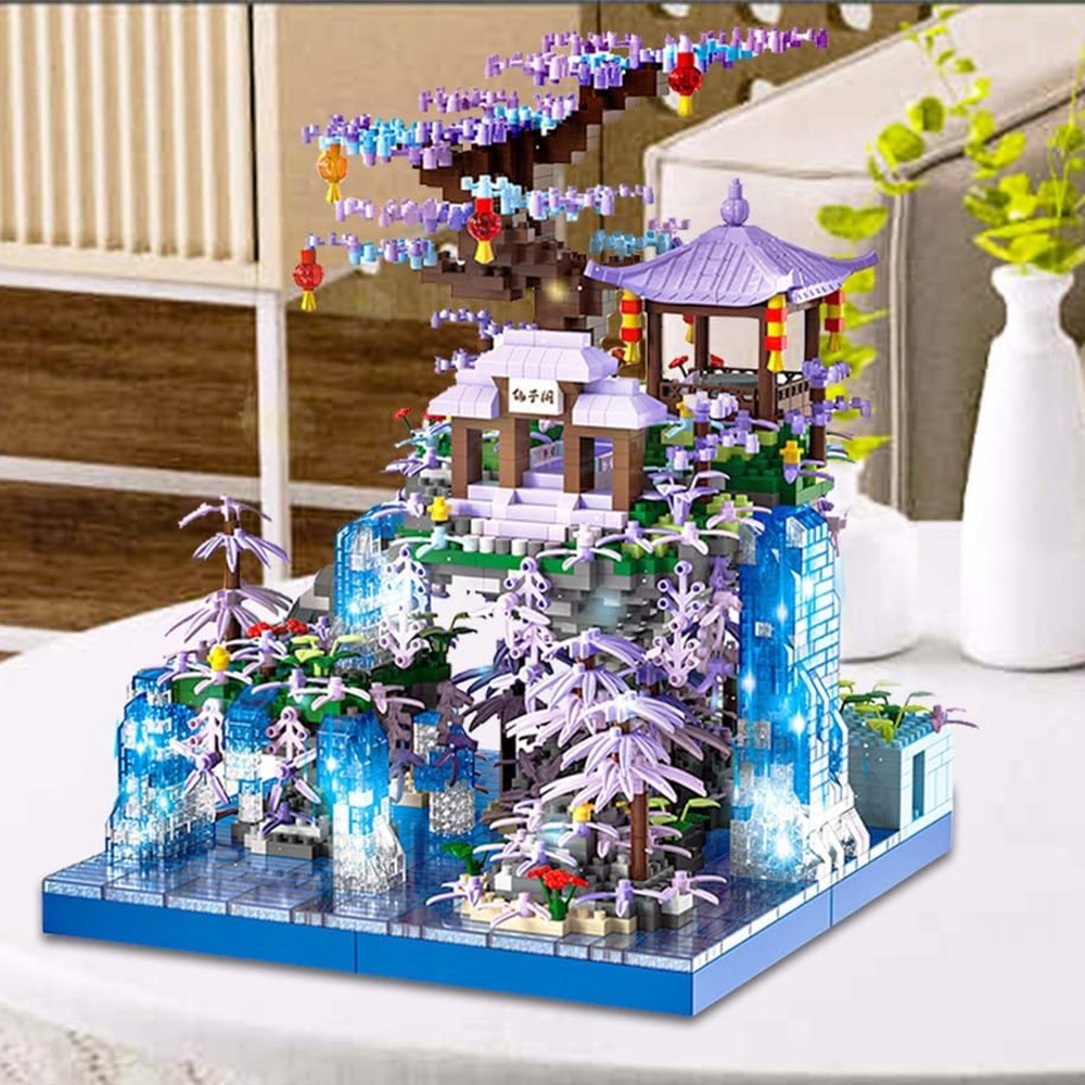 СТРОИТЕЛЬНЫЕ БЛОКИ БОНСАЙ ДЕРЕВО ВИШНЕВЫЙ ЦВЕТ ВОДОПАД ДОМ ПОДАРОК