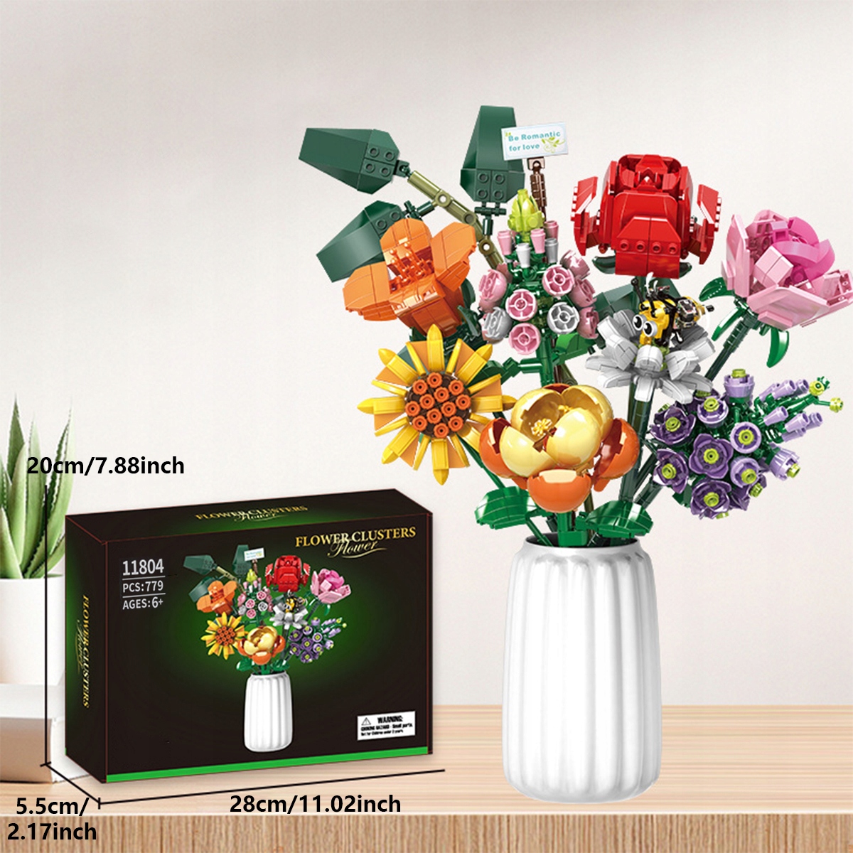 🩷🩵💛YOUKUKE 11804 Набор для сборки букета цветов - набор из 779 предметов, 8 видов цветов своими руками - кубики для девочек и мальчиков от 6 лет - креативное украшение дома, ко Дню матери, дню рождения, Новому году🩷🩵💛