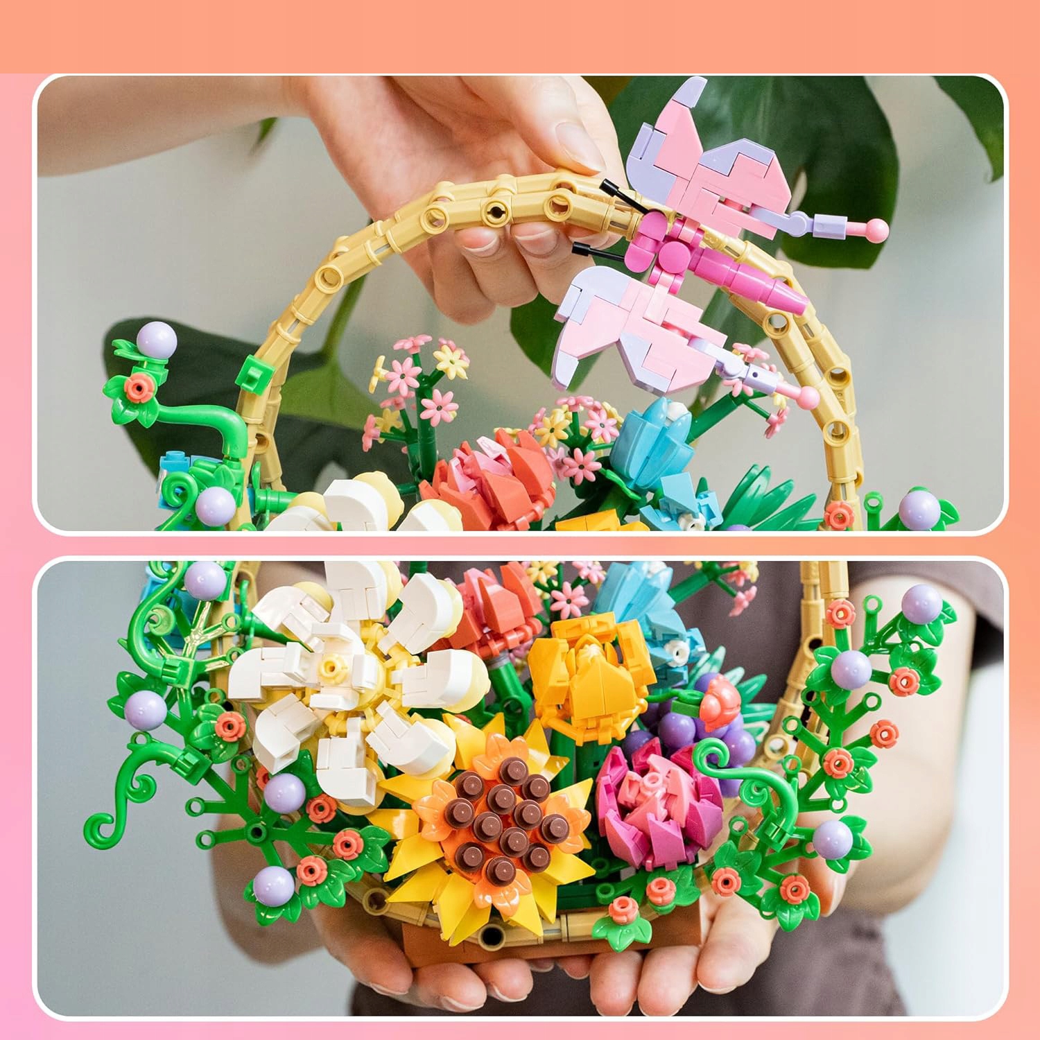 🌸 Яркие цвета и стильное оформление:каждый цветок украшен красочными детализированными блоками, передающими суть настоящих цветов. Собранная цветочная корзина станет стильным декоративным элементом для вашего дома и привнесет дыхание естественной красоты в любую комнату.