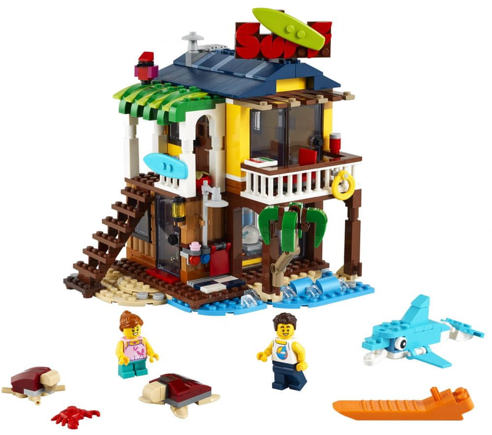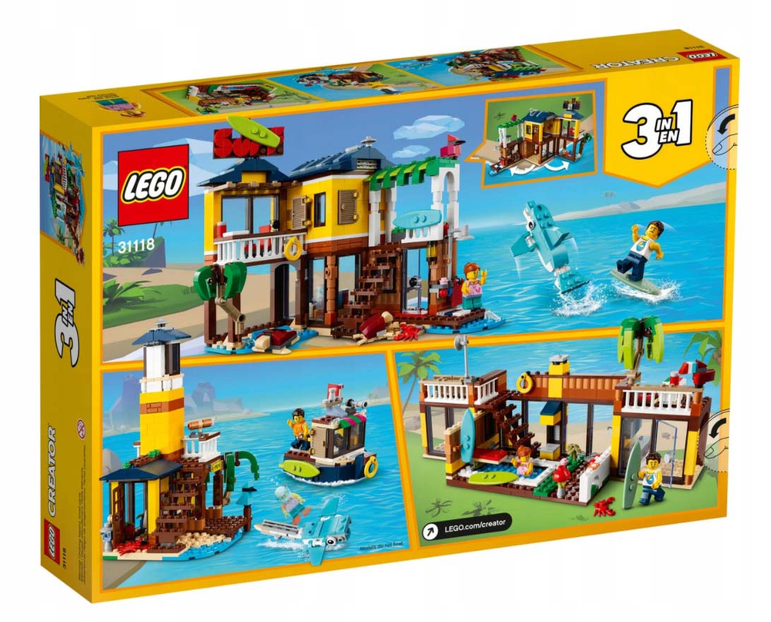 - Набор LEGO® Creator 3in1 Beach Surf House (31118) развлечет детей на долгие часы. Один набор блоков позволяет построить три модели: дом серфера, маяк и дом с бассейном.