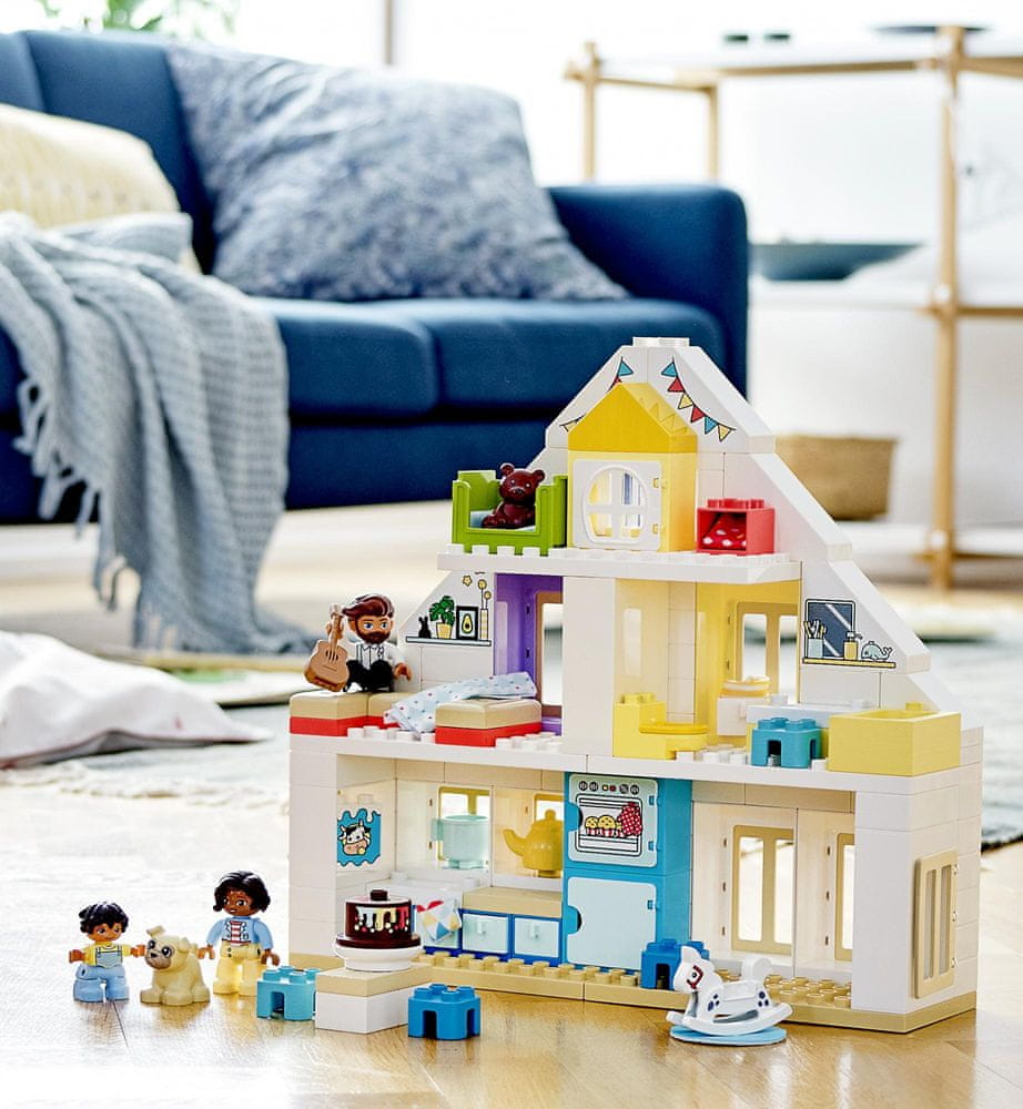 - Главный дом имеет высоту около 36 см, ширину 39 см и глубину 10 см. Эту многофункциональную модель также можно комбинировать с другими наборами LEGO DUPLO, чтобы дать детям еще больше возможностей для игр.