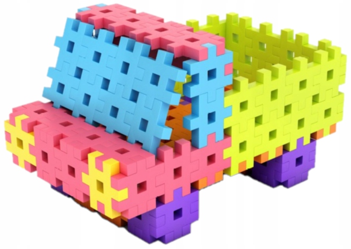 Плоские однородные элементы приятных цветов легко соединяются с помощью специальных зубцов, позволяющих создавать плоские и трехмерные формы.