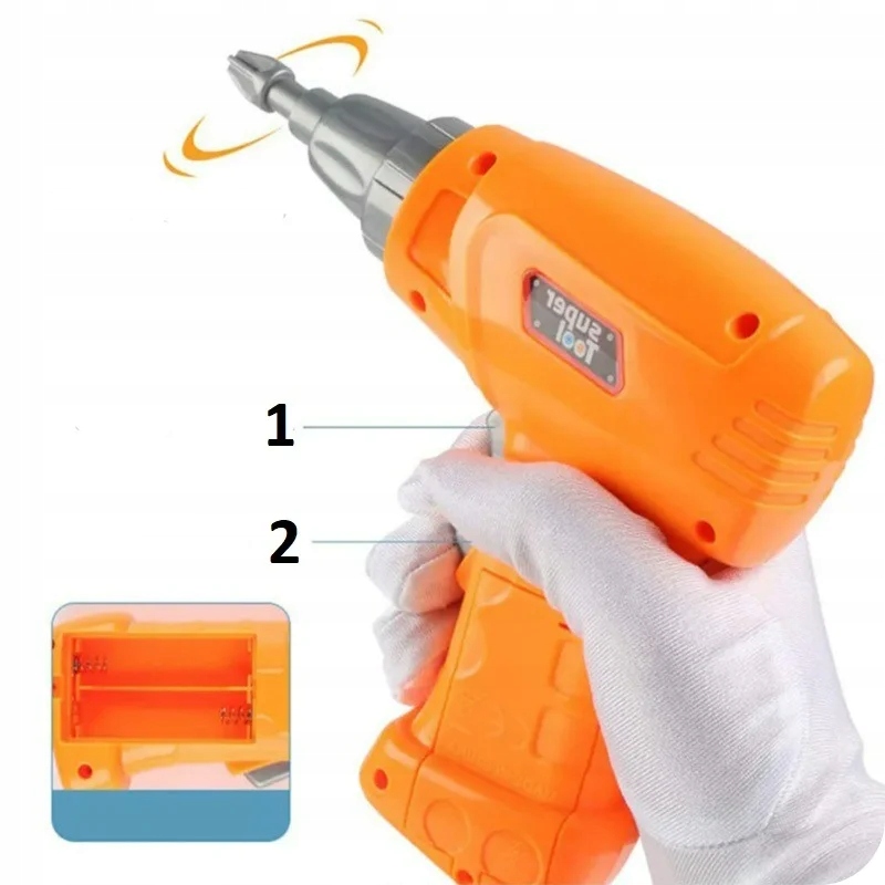 ⭐ Реалистичная отвертка, как настоящая - Работает от 2 батареек типа АА (не входят в комплект), вращается в двух направлениях и имеет сменные наконечники: плоский и крестообразный - как настоящий папин инструмент