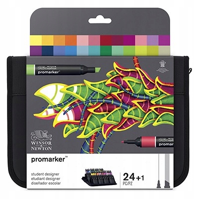 Promarker — двусторонняя ручка от Winsor & Newton, считающаяся самой популярной в мире. Своим международным успехом она обязана своему стилю, эргономичности, долговечности насадок и, прежде всего, впечатляющей палитре из 148 различных цветов. В распоряжении создателей блестящие, приглушенные, пастельные, интенсивные, черные композиции и Blender — бесцветный карандаш для тонирования, осветления и смешивания цветов. Отдельные цвета плавно смешиваются на бумаге. Это позволяет расширенно манипулировать интенсивностью цвета. Правильная стойкость и интенсивность оттенков представлены на специально подготовленной бескислотной бумаге для маркеров Winsor & Newton.