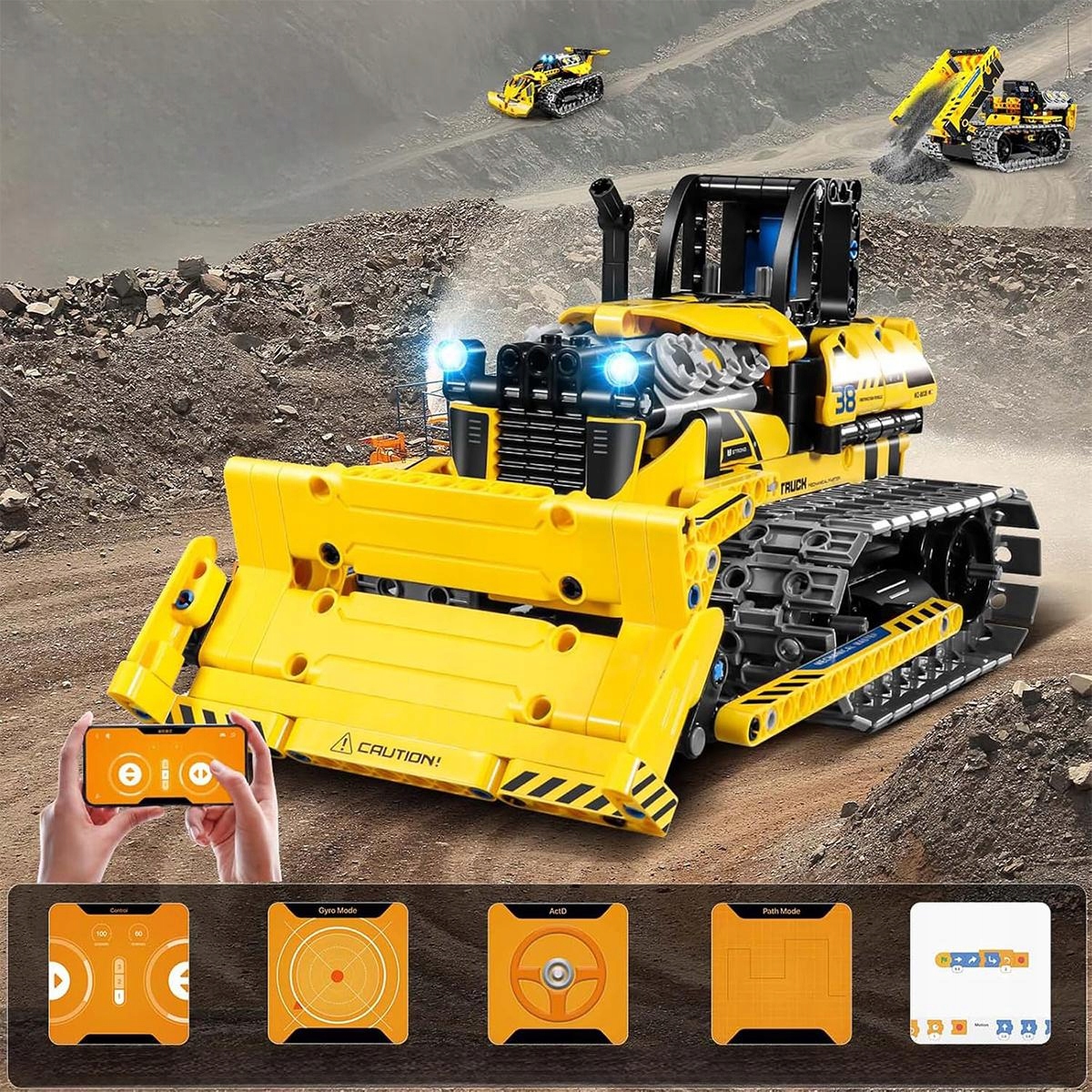 Благодаря мощным цепным приводам пультом для детей от 6 лет можно легко управлять на различных поверхностях – как в помещении, так и на улице! Вперед, назад, поворот, разворот — вы полностью контролируете ситуацию! Вместо того, чтобы сидеть перед экраном, дети погружаются в мир, полный движения, открытий и интерактивных приключений.