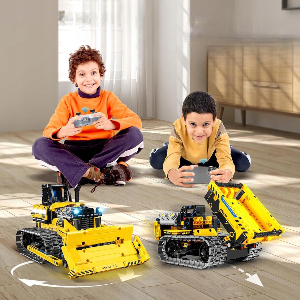 Благодаря мощным цепным приводам пультом для детей от 6 лет можно легко управлять на различных поверхностях – как в помещении, так и на улице! Вперед, назад, поворот, разворот — вы полностью контролируете ситуацию! Вместо того, чтобы сидеть перед экраном, дети погружаются в мир, полный движения, открытий и интерактивных приключений.