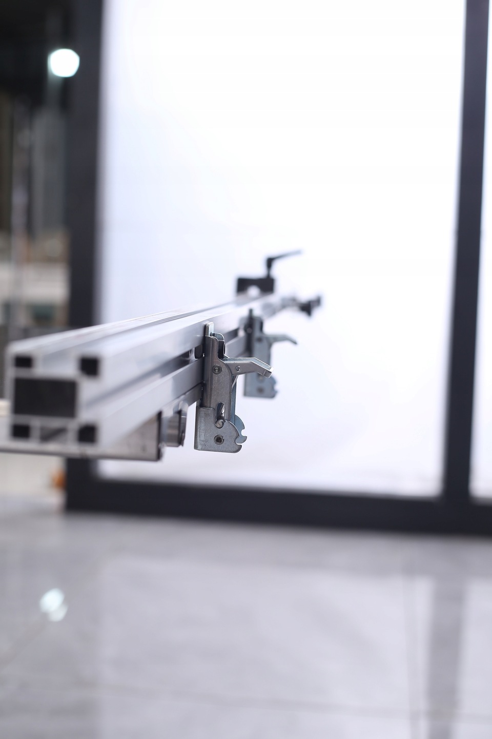 Набор включает в себя: верхние петли, ползунок, винты с ручками, закрепляющие линейную полосу.
