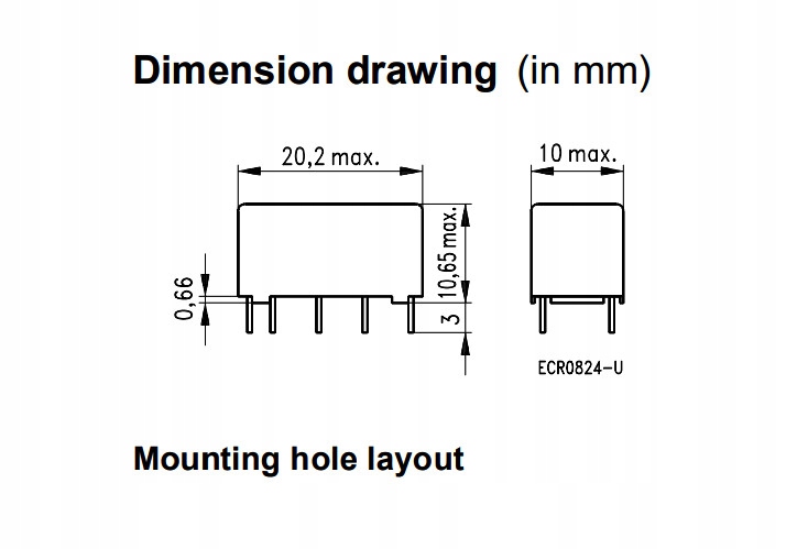 - Размеры: 20,2 х 10,65 х 10 мм (согласно графику),