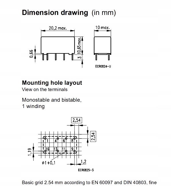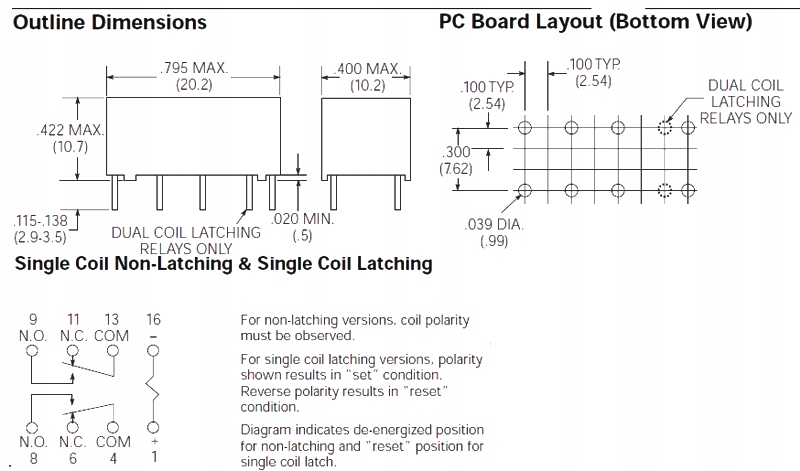 - Катушка: 12 В постоянного тока, 600 Ом, 0,25 Вт