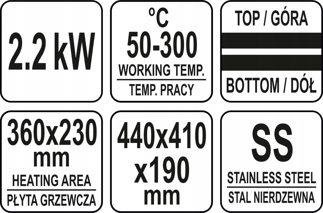 Контактный гриль PANINI, гладкий, 2200Вт, 230В YATO