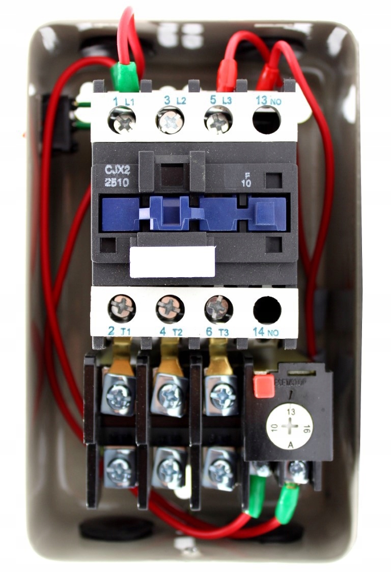 Контактор помещается в a Герметически закрытый корпус с переключателем/выключателем, установленным на боковой стороне корпуса.