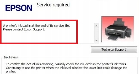 ЗАМЕНИТЕ, ЕСЛИ ВАШ ПРИНТЕР ПОКАЗЫВАЕТ СООБЩЕНИЕ О ПЕРЕПОЛНЕНИИ ЧЕРНИЛЬНОГО КОНТЕЙНЕРА (Срок службы Epson Ink Pad подошел к концу)