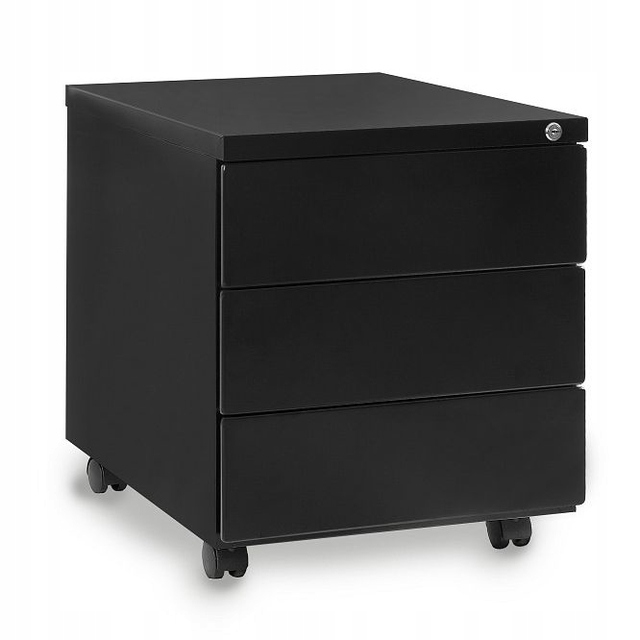 Офисный контейнер 424металлический, с порошковым покрытием в одном из трех доступных цветов: белом, черном или серебристом. Оснащен тремя вместительными ящиками. Имеет цилиндровый замок, позволяющий запирать контейнер на ключ.
