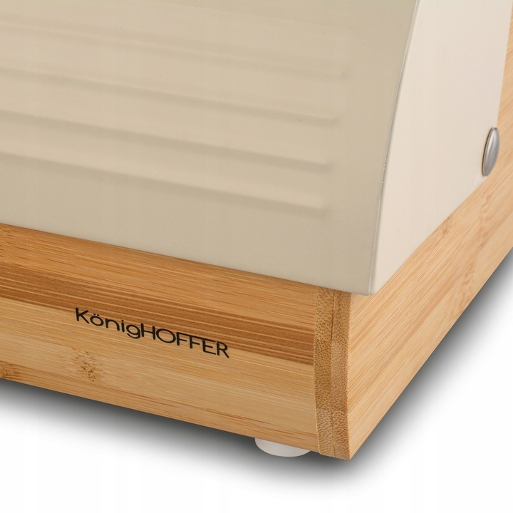 Деревянная хлебница Konighoffer Fushion 36 х 22 х 17 см помогает продлить свежесть хлеба и позволяет каждое утро есть вкусный хлеб, без необходимости каждый день ходить в магазин. Благодаря современному дизайну он станет стильным элементом кухонного оборудования. Вы можете легко содержать его в чистоте. Модель имеет шарнирную застежку из стали кремового цвета. Он хорошо защищает содержимое от загрязнений и света. Бамбуковый корпус очень прочный и полностью экологичный. Здесь можно разместить хлеб и булочки на несколько человек. Это предложение для тех, кто ценит свежесть, хрусткость и аромат свежего хлеба и ищет прочную и компактную хлебницу. Его можно устойчиво разместить на столешнице и вписать в пространство небольшой кухни. Это также может быть хорошей идеей для подарка, например. на новоселье!