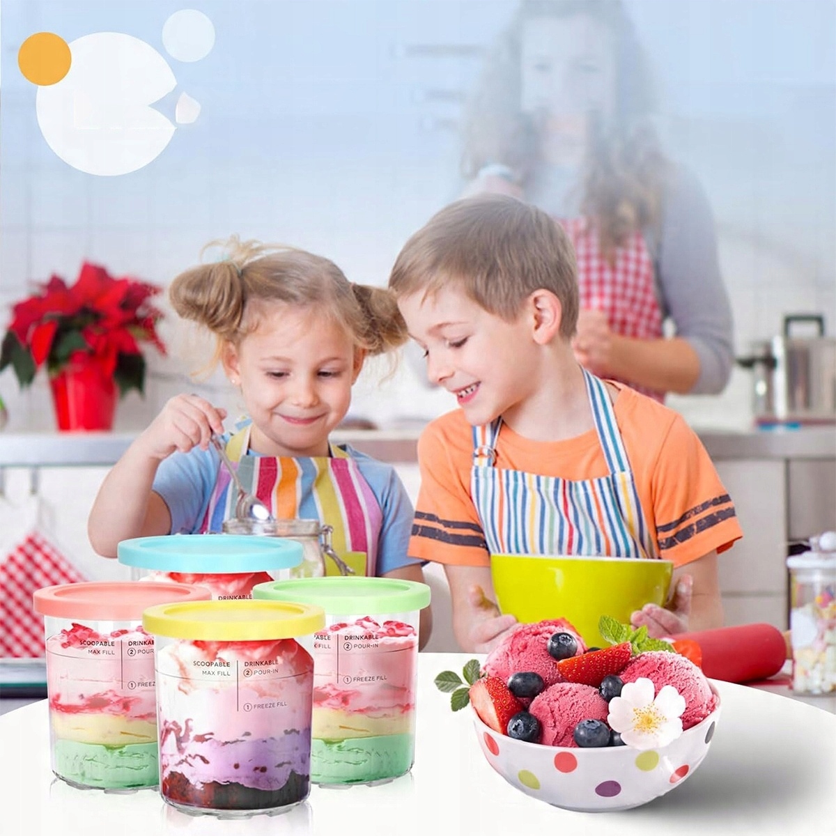 🍒 🍒 🍒 Creami Deluxe для мороженого Ninja Creami NC501EU, 4 пакета контейнеров с мороженым, аксессуаров для мороженого с кремом, совместимых с ниндзя сливочная, желтая и синяя.