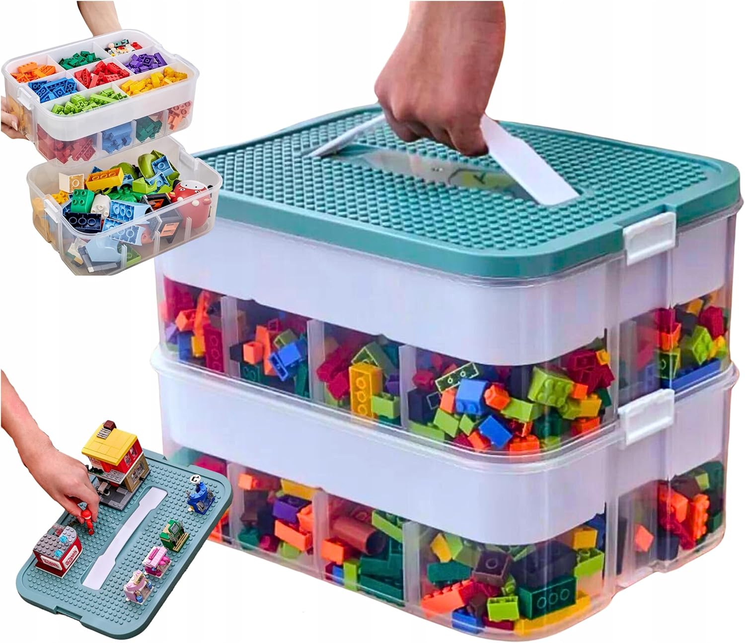 КОНТЕЙНЕР ДЛЯ БЛОКІВ ЛЕГО ІГРАШКИ ОРГАНАЙЗЕР КОРОБКА 2 ПОВЕРХОВА РУЧКА 12Л
