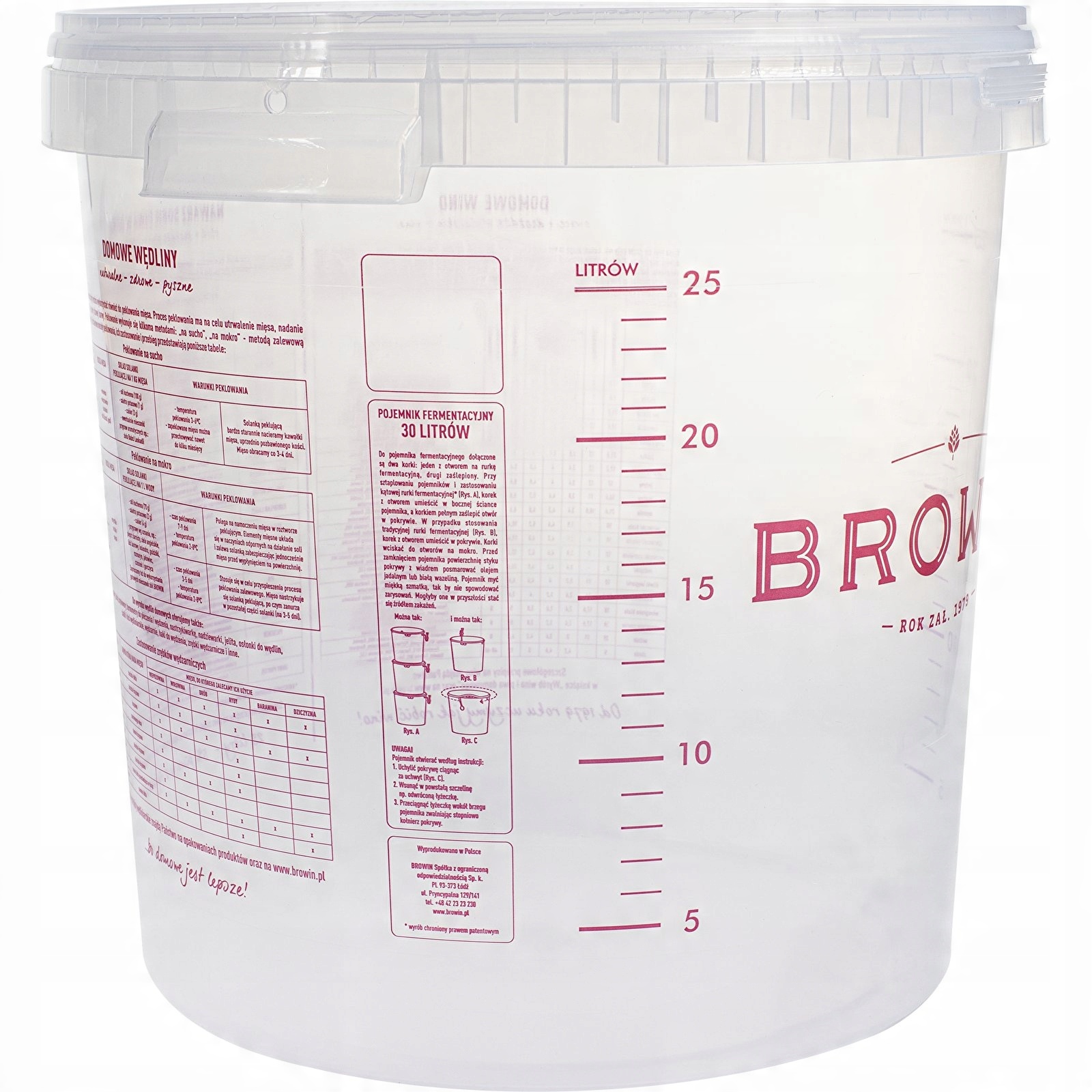Экономичная емкость для брожения емкостью 30 л, в которой можно приготовьте свои любимые домашние напитки. Он изготовлен из прозрачного материала, предназначенного для контакта с пищевыми продуктами и отличающегося высокой прочностью и гибкостью. Контейнеры сертифицированы Национальным институтом гигиены, что позволяет им контактировать с пищевыми продуктами, и устойчивы к изменению цвета в результате контакта с дубильными веществами фруктов. Благодаря прозрачному материалу вы также можете легко следить за ходом брожения, не открывая крышку контейнера. Входящая в комплект крышка с отверстием и 2 уплотнительные пробки позволяют закупорить емкость или поставить бродильную трубку. Самостоятельное сверление дополнительного отверстия позволяет установить угловую трубу и проводить брожение в нескольких емкостях, поставленных друг на друга одновременно. Принт со шкалой и советами по приготовлению домашнего вина, пива и мясного ассорти позволяет контролировать количество в емкости и облегчает приготовление домашних деликатесов.