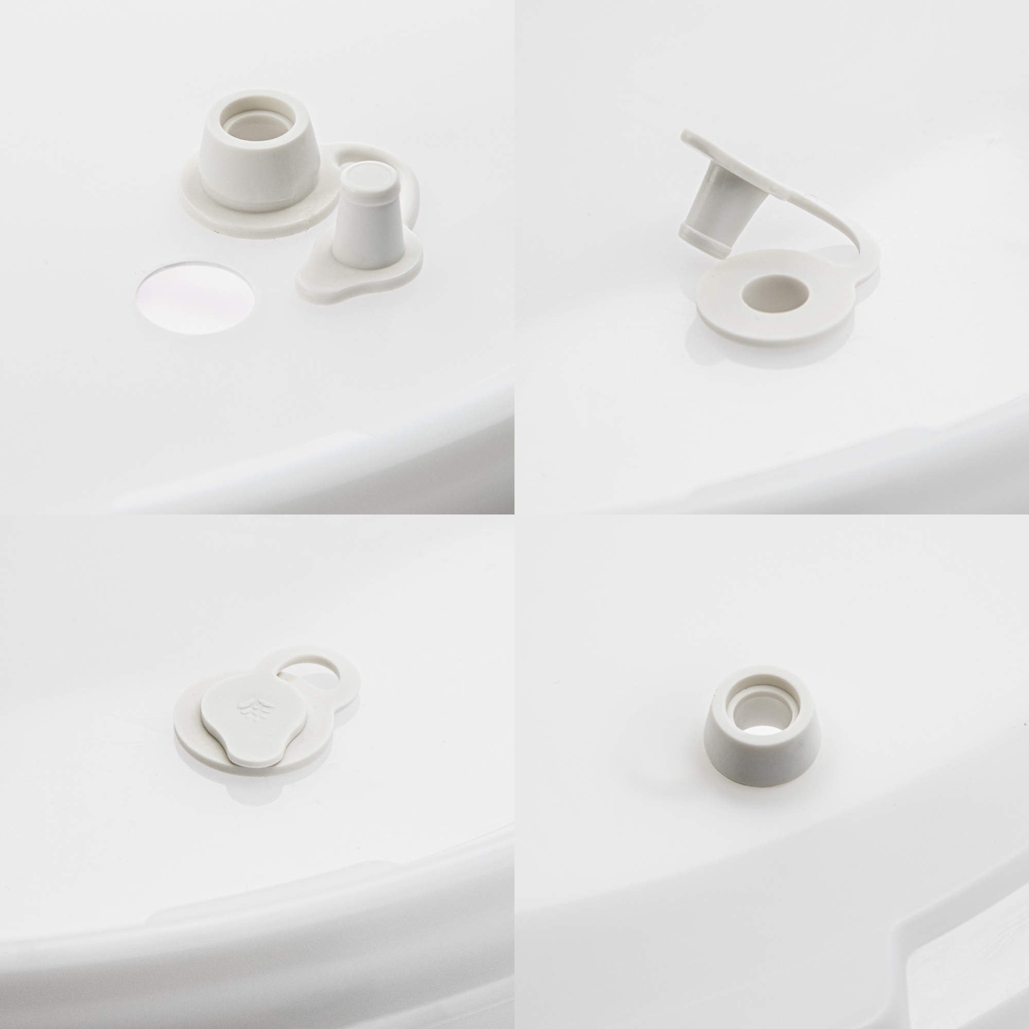 Контейнер имеет два отверстия: одно в крышке, другое в боковой стенке. В комплект входят две универсальные пробки с пробкой и одна угловая трубка из небьющегося материала.