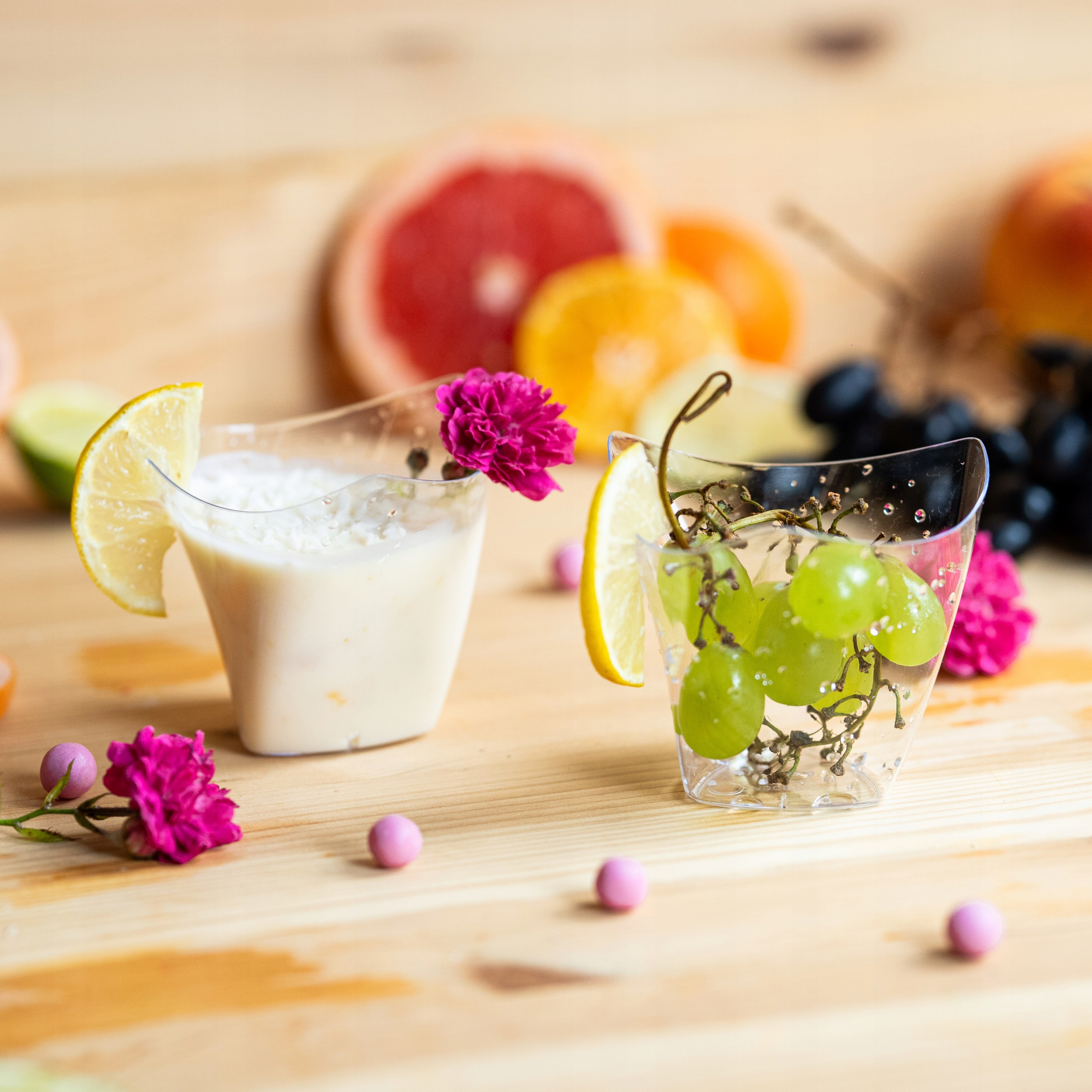 Изготовлены из прозрачного пластика. Идеально подходят для подачи сладких и соленых закусок. Идеально подходят для вечеринок, торжеств, для демонстрации еды. уникальный способ. Мы можем оригинально подать гостям такие десерты, как панна котта, тирамису или пудинг. Чашки для домашнего и профессионального использования.