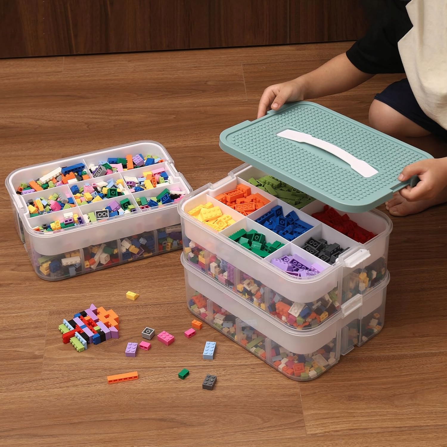 Благодаря съемным перегородкам вы можете легко сортировать блоки по цвету, форме или серии.
