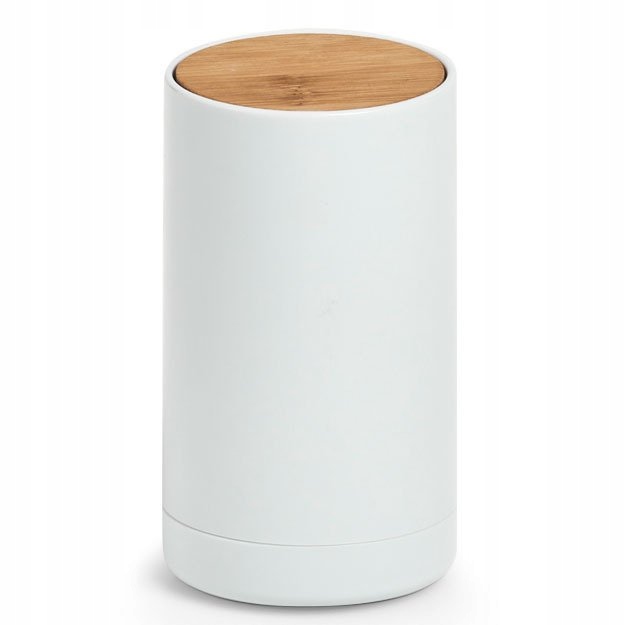 Аксессуар, который поможет вам организовать полку в ванной, — это ватная подставка ZELLER. Данное изделие имеет размеры 6,5 см х 11,5 см (диаметр х высота) и изготовлено из прочного пластика белого цвета. Благодаря своим размерам оно может вместить большой запас ватных палочек и при этом не будет занимают много ценного места. Плоское и гладкое дно означает, что контейнер для ушных тампонов не будет раскачиваться, скользить и не царапать поверхность.