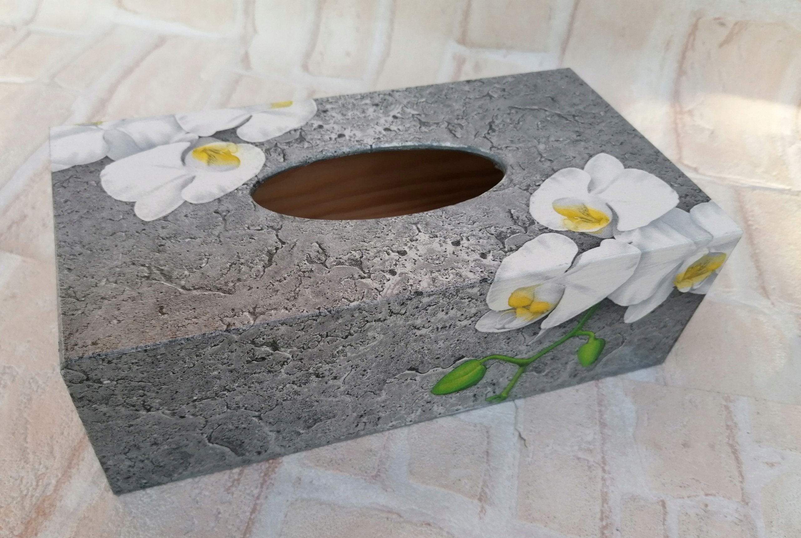 Контейнер для носової хустки витирає білу орхідею