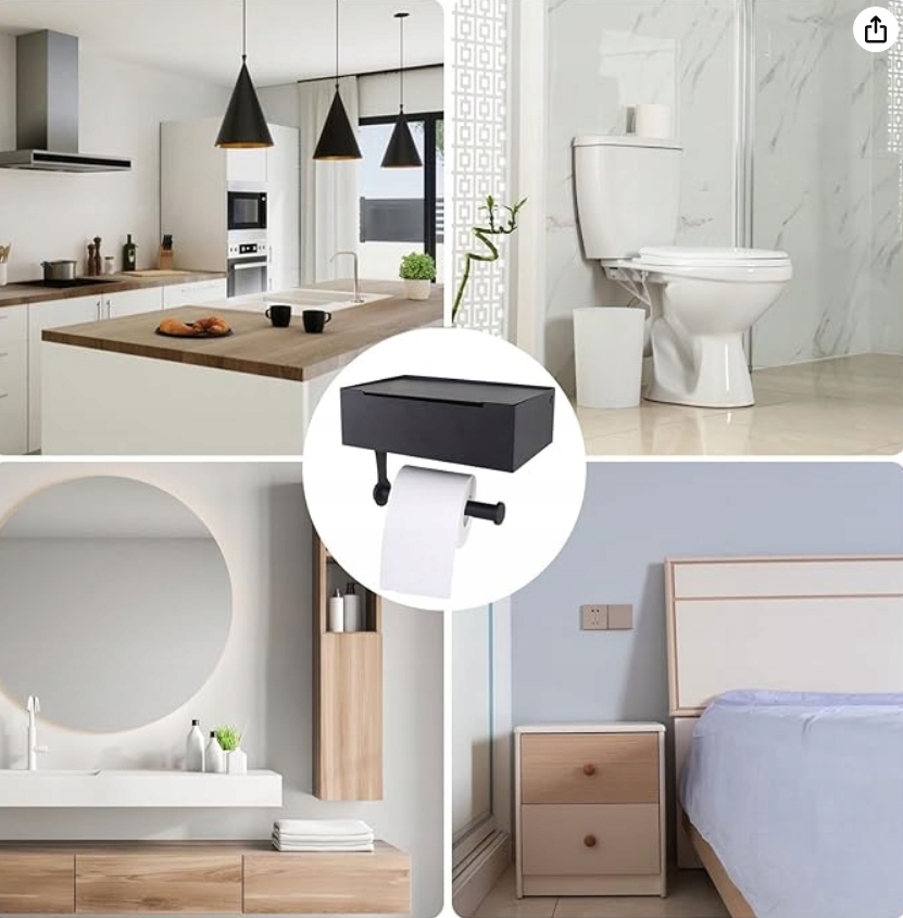 Удобное решение 2-в-1 для ванной комнаты, для хранения и хранения рулонов туалетной бумаги с лотком для влажной туалетной бумаги или мобильного телефона. Элегантный внешний вид, прост в уходе и устойчив к загрязнениям.