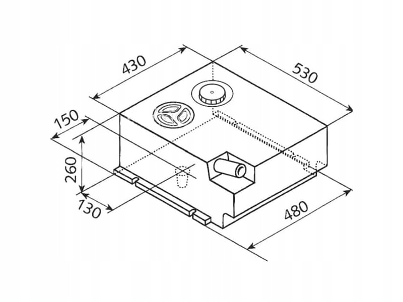 - Размеры (длина x Общая ширина x высота): 530 x 480 x 260 мм,