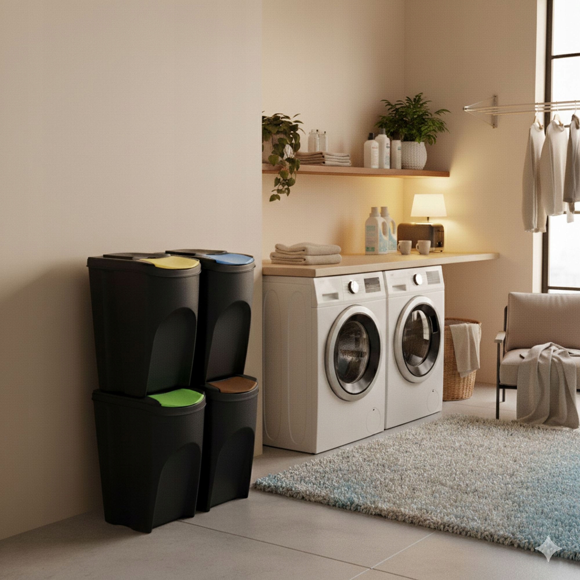 Это решение, предназначенное для удобного и осознанного разделения мусора в доме. Компактный, эстетичный набор из 4-х контейнеров отлично подойдет даже в ограниченном пространстве.