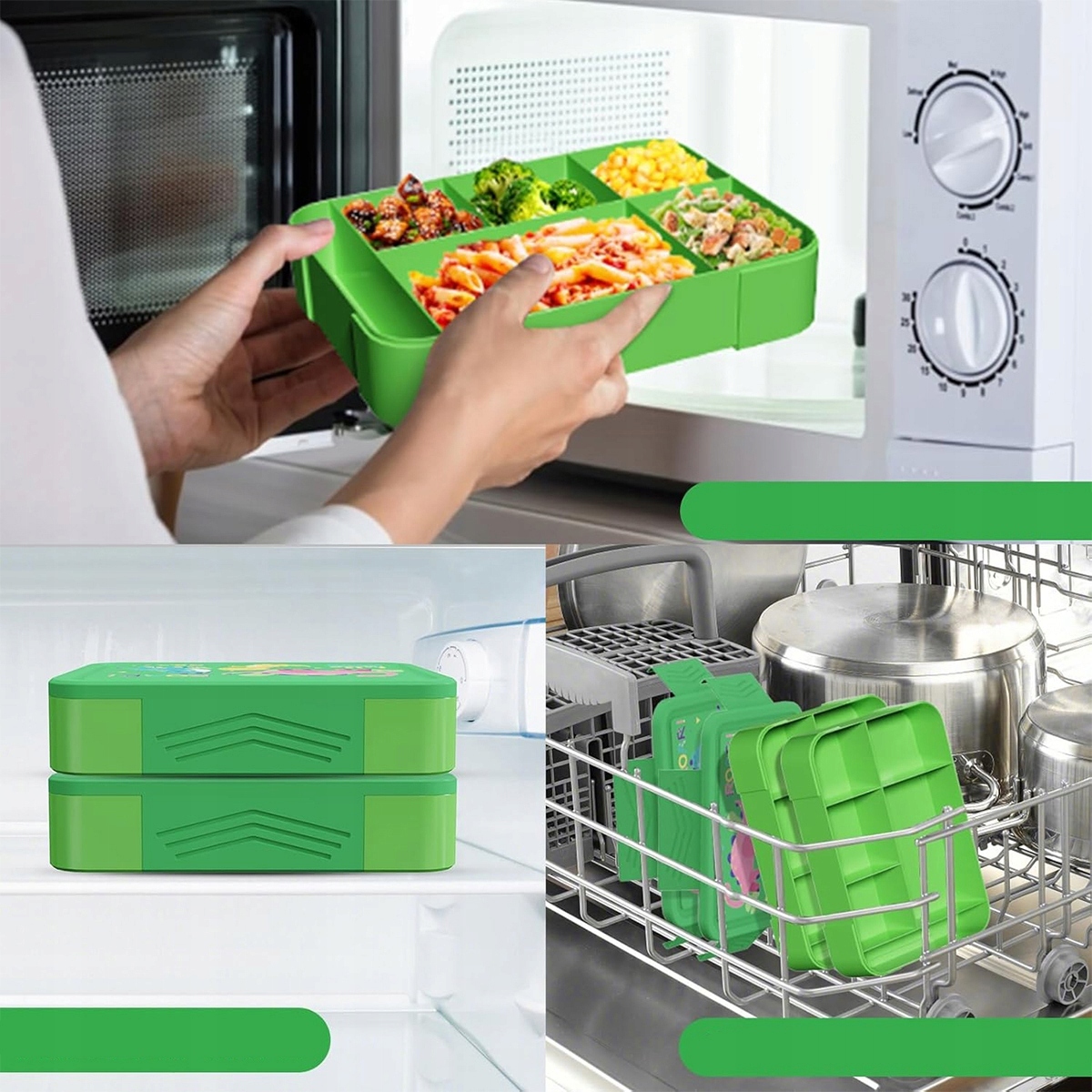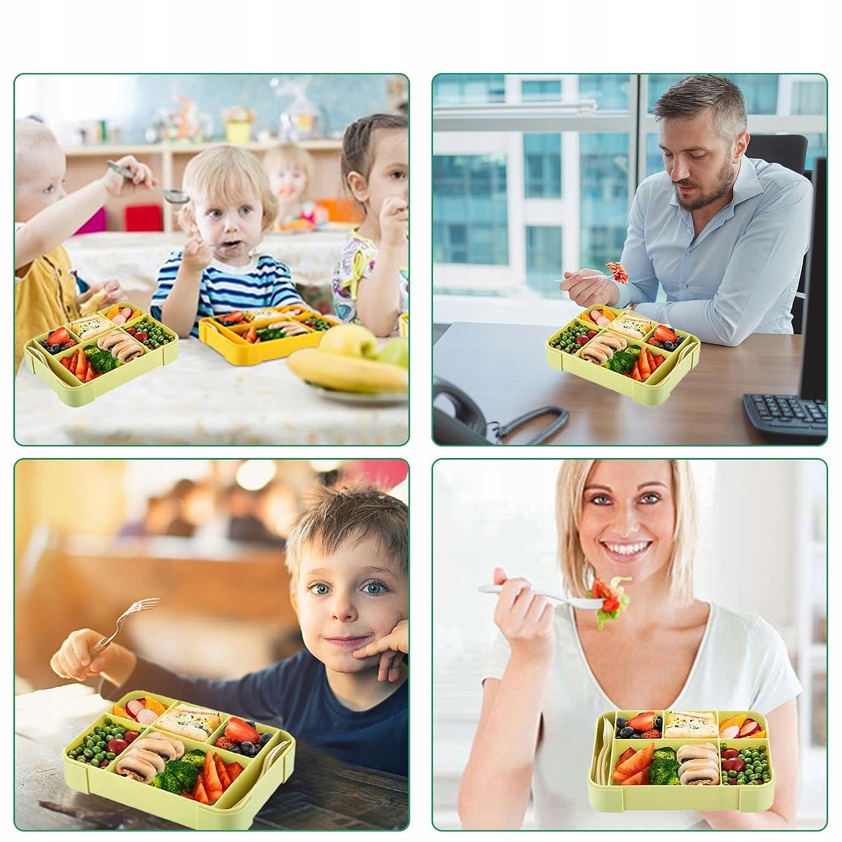 ✅ Детский ланч-бокс с отделениями - Ланч-бокс детского сада имеет 5 отделений для отдельной подачи основного блюда, фруктов, закусок, салата, бутербродов и соуса. В комплект также входит отдельная емкость для соуса с крышкой и набор ножей и вилок.
