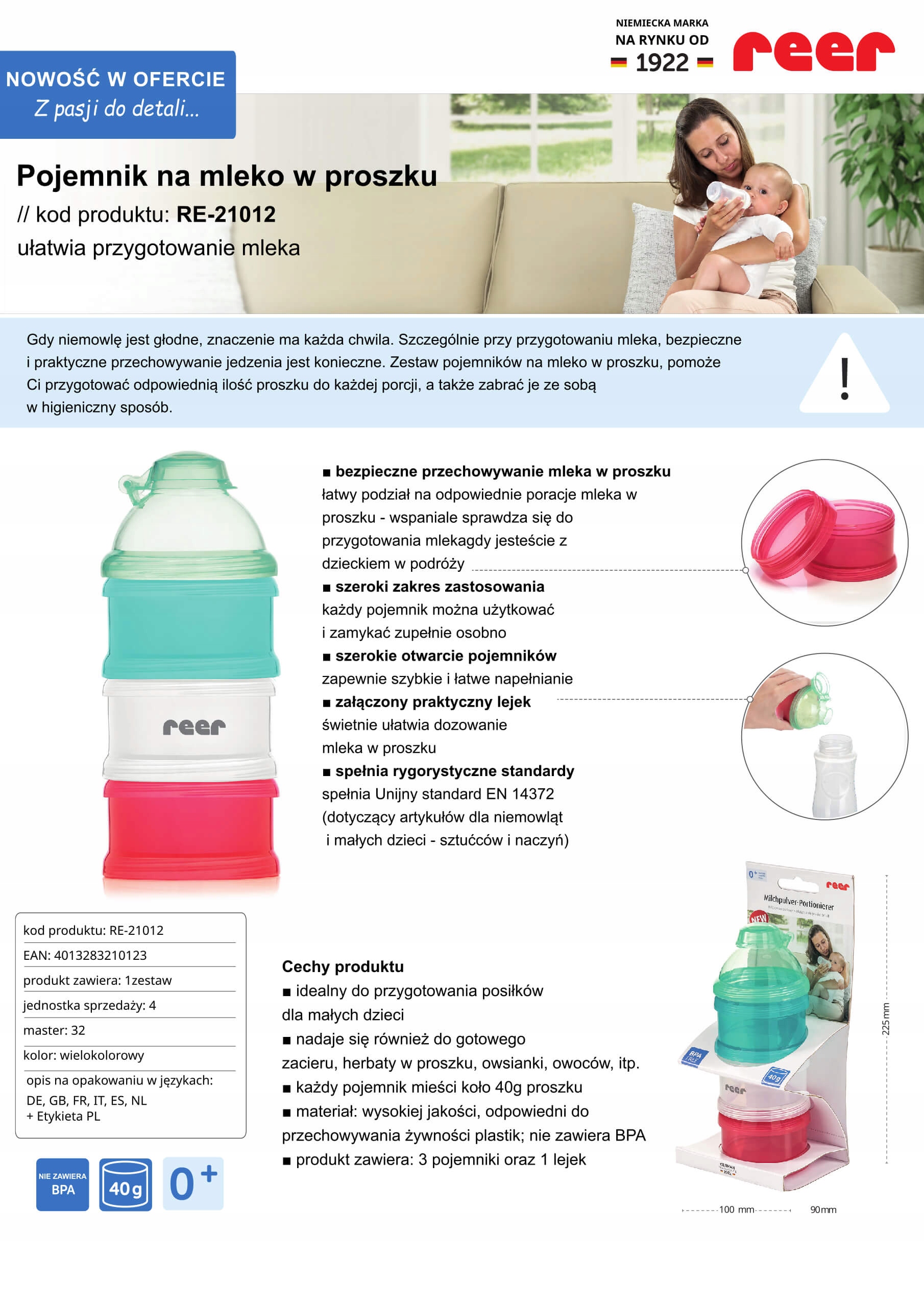 Тройной контейнер для сухого молока с практичной воронкой – продукт немецкой марки REER