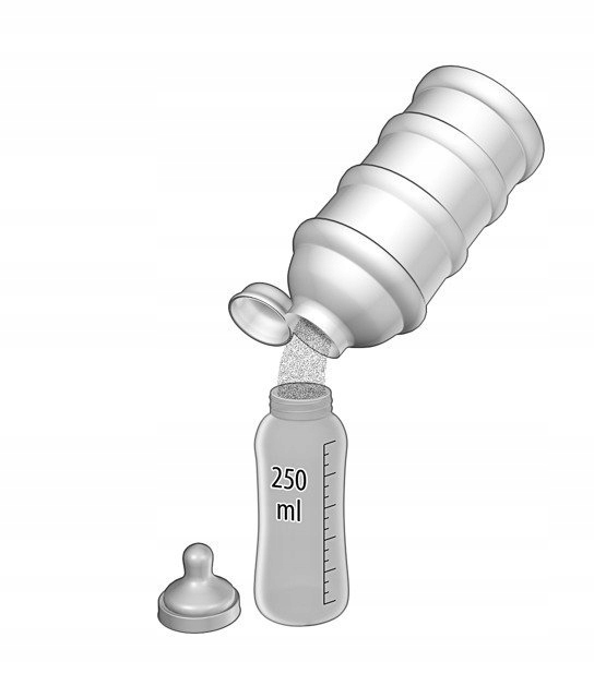 - Прилагаемая воронка облегчает насыпьте сухое молоко в бутылку.