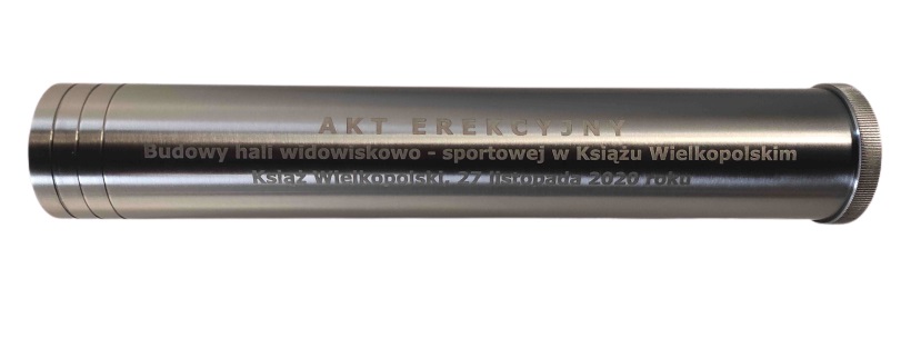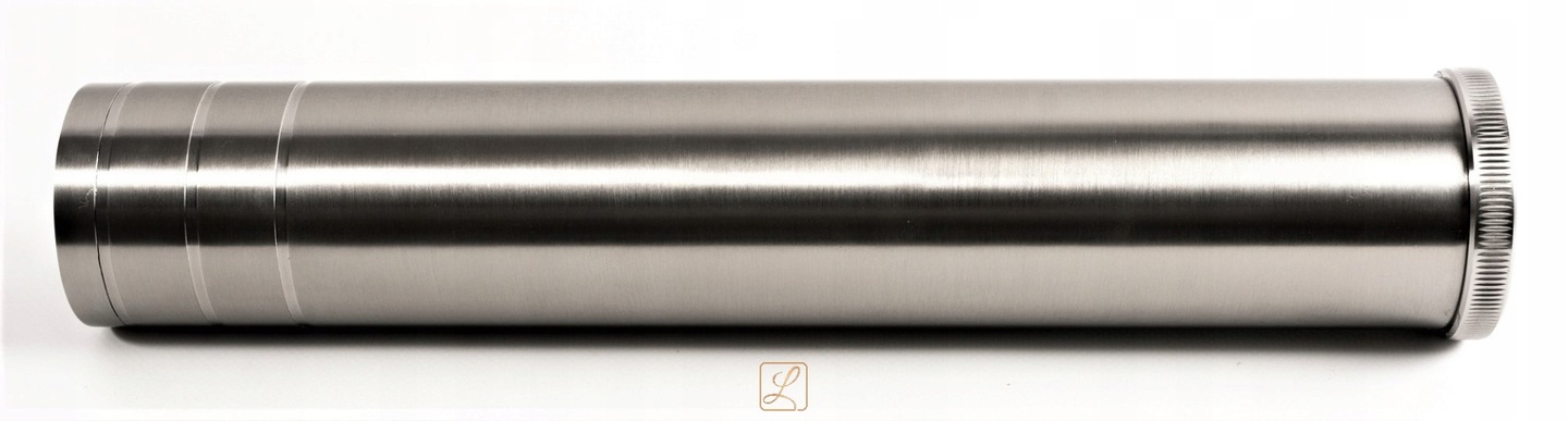 Туба -контейнер для эрекции из нержавеющей стали. Надпись на трубе и орехе h1>