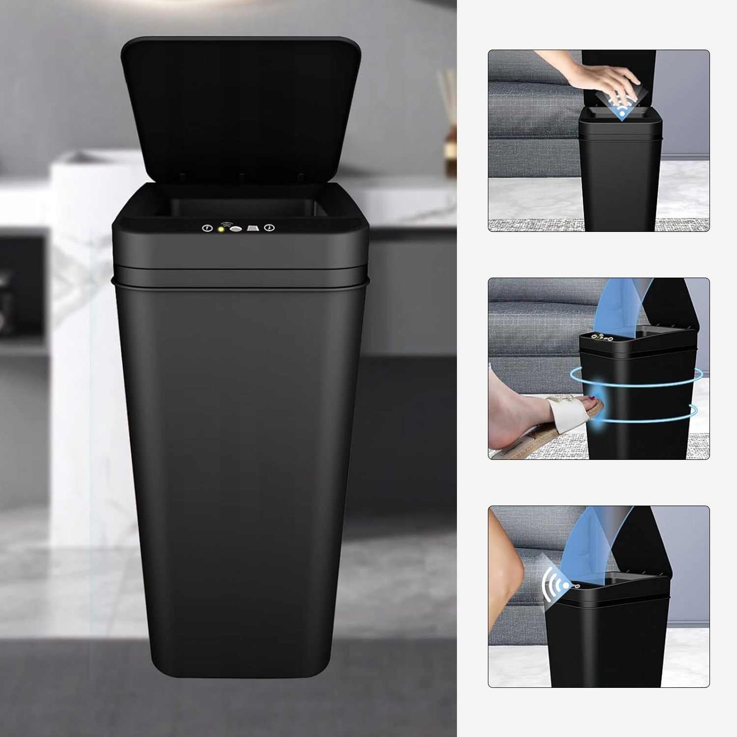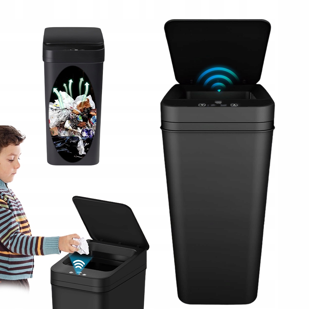 - В мусорном баке с датчиком движения используется передовая технология автоматического обнаружения.