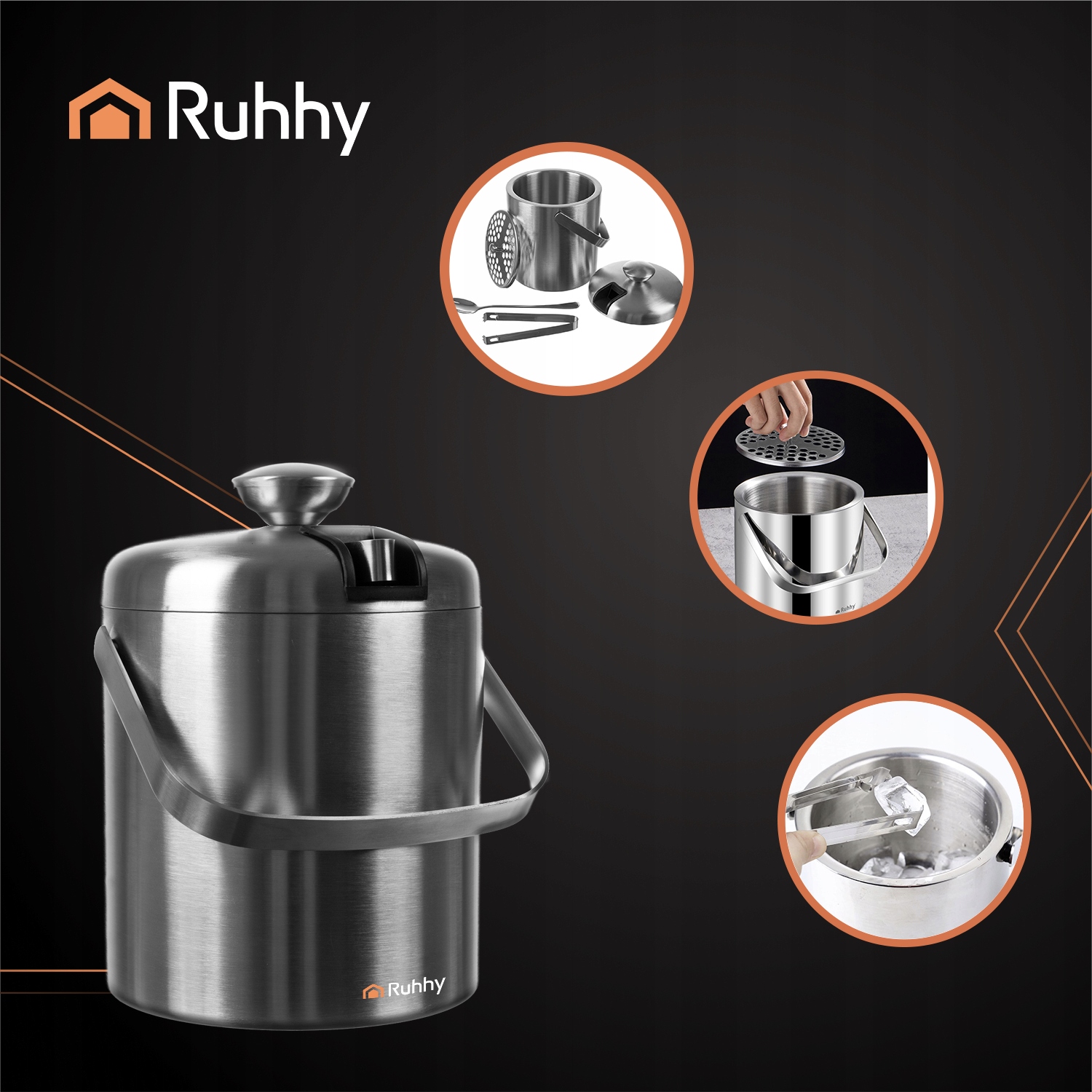 ✴, оснащенное практическим ситом, которое отделяет лед от воды, ведро Ruhhy поддерживает кубики готовыми к использованию на долгое время. На съемочной площадке вы также найдете элегантные плоскогубцы и бармены - идеально подходит для точного и стильного льда в течение каждого случая. Это функциональное решение, которое будет работать в домашнем плече, на вечеринках или при жарке с друзьями.