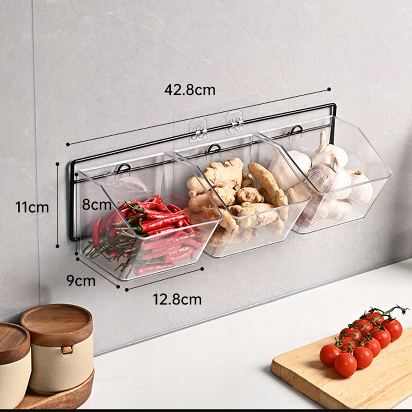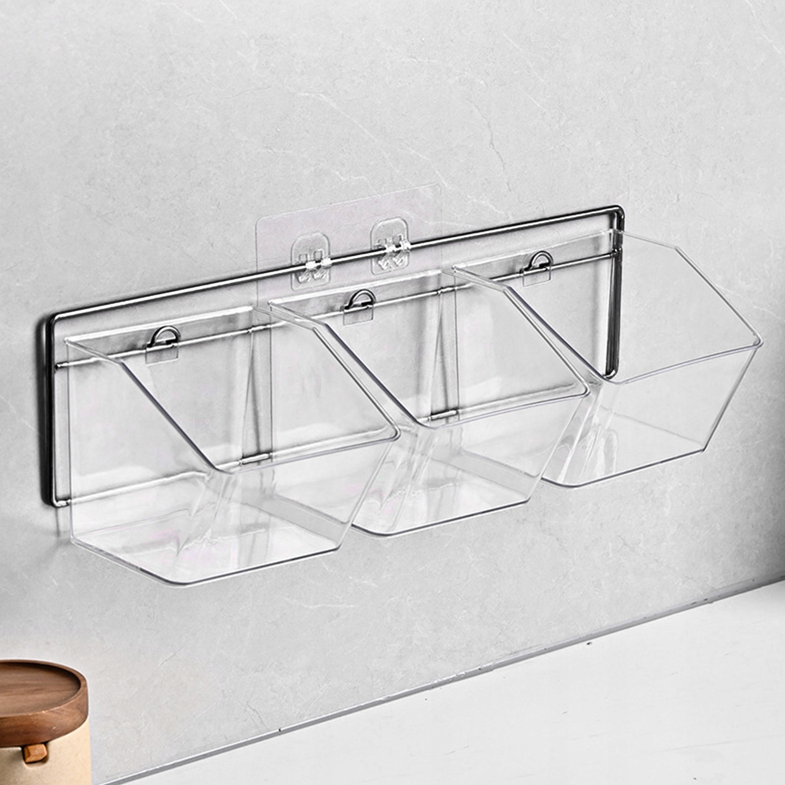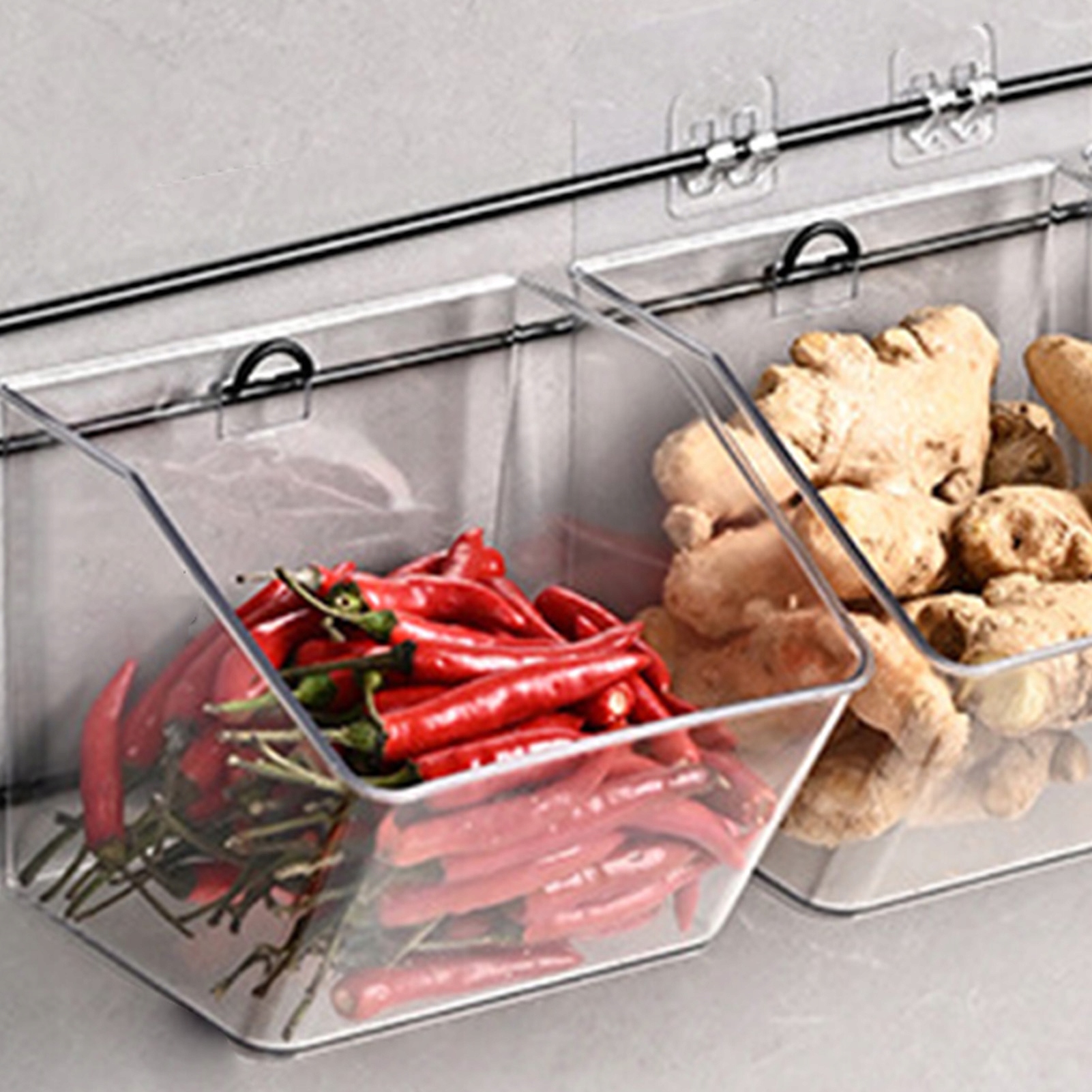 2. [Дизайн для настенного крепления]: контейнер можно легко закрепить на стене, устраняя необходимость в пространстве на столешнице, обеспечивая удобство и сохраняя при этом всегда легкий доступ к ингредиентам.