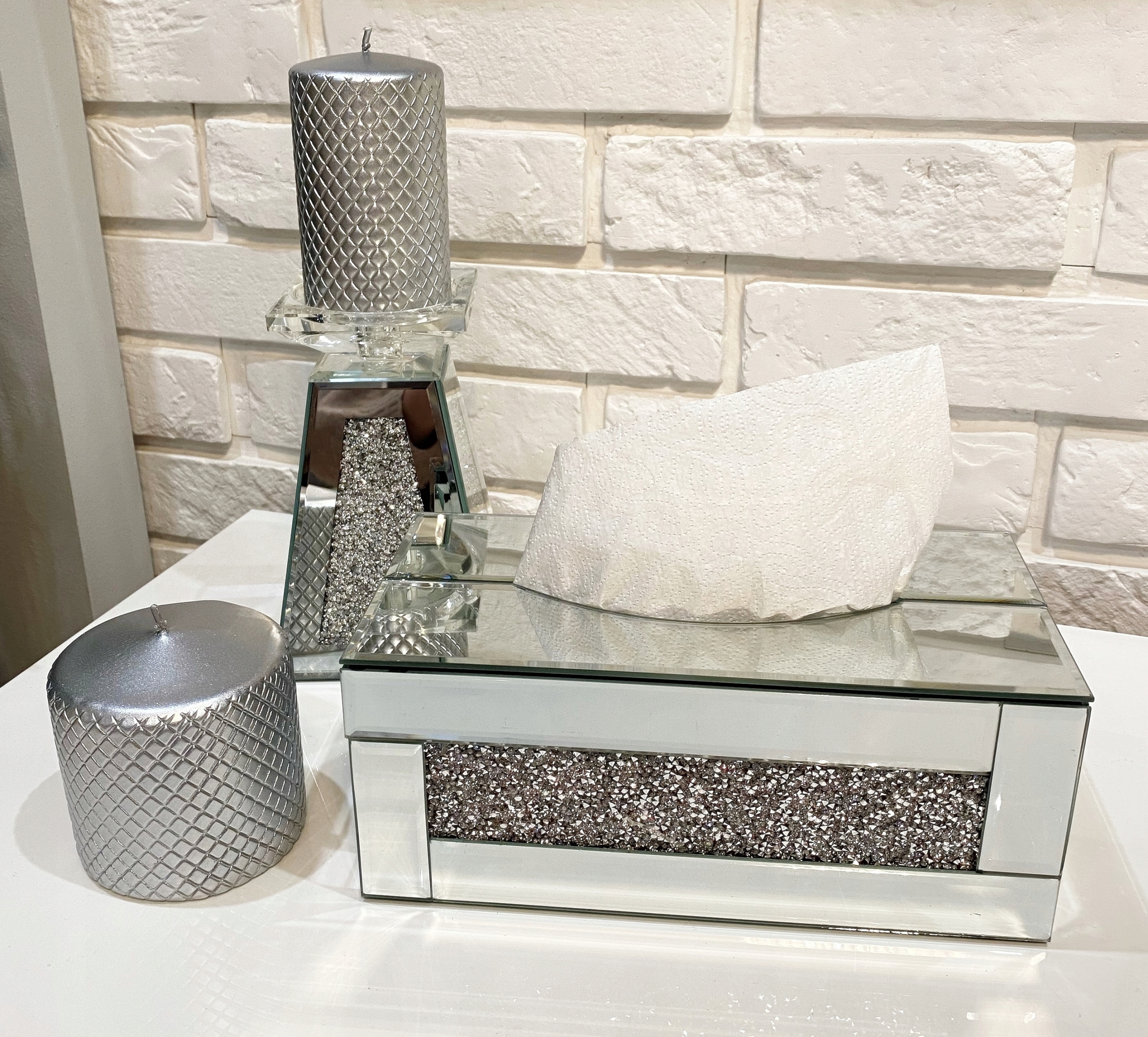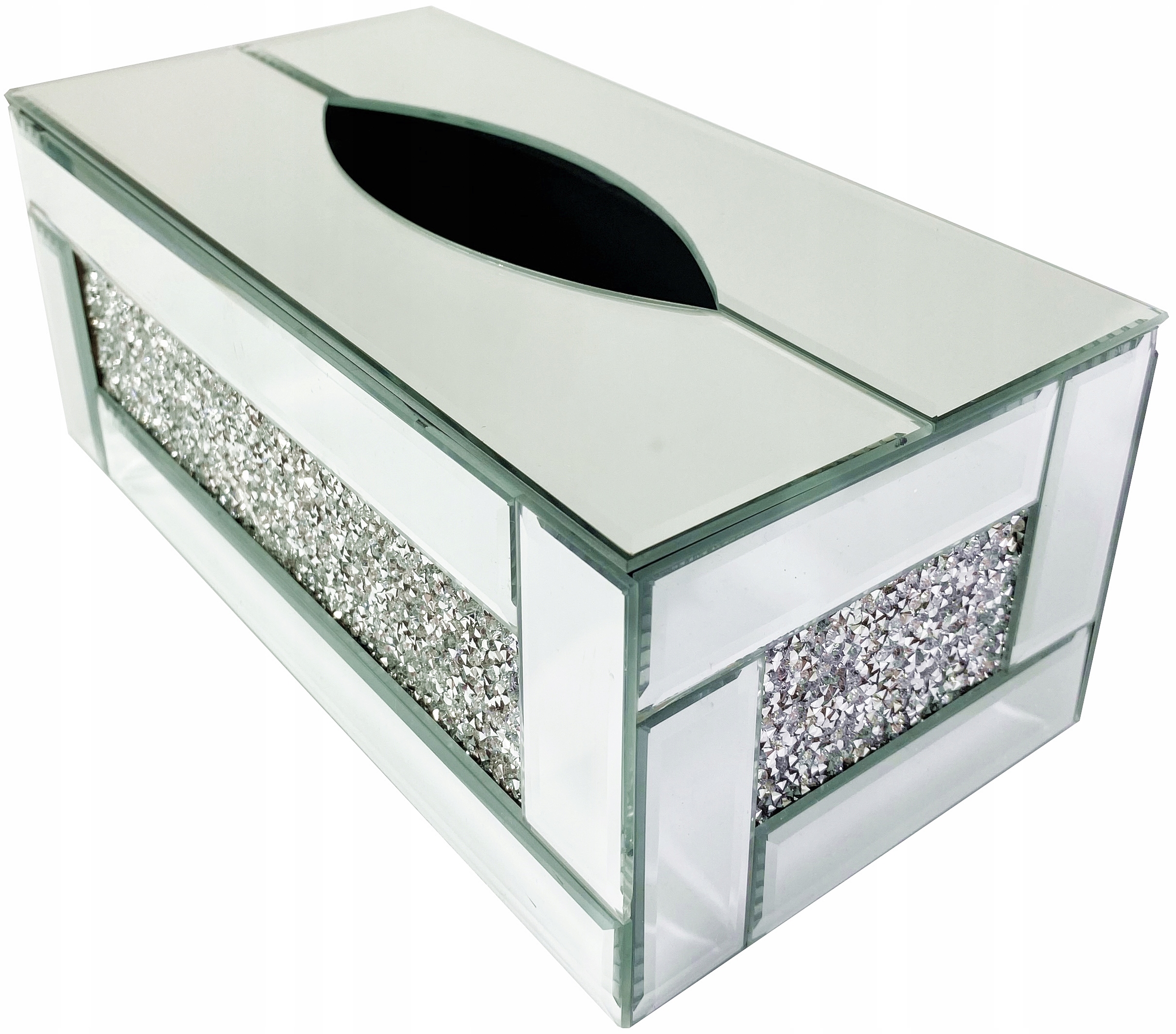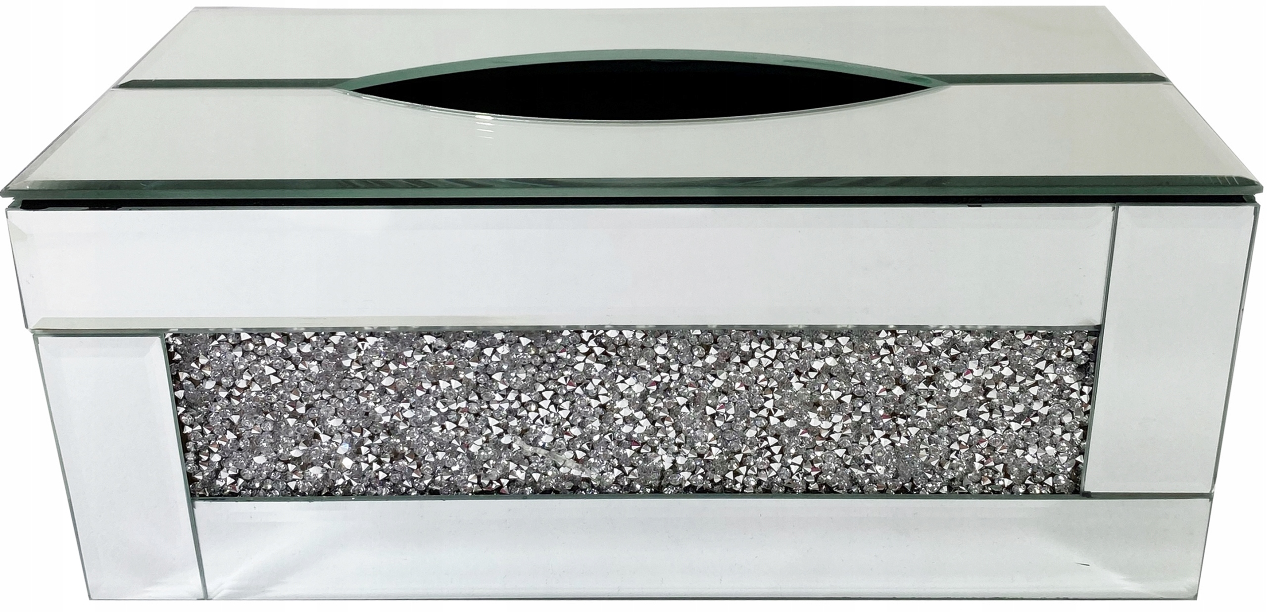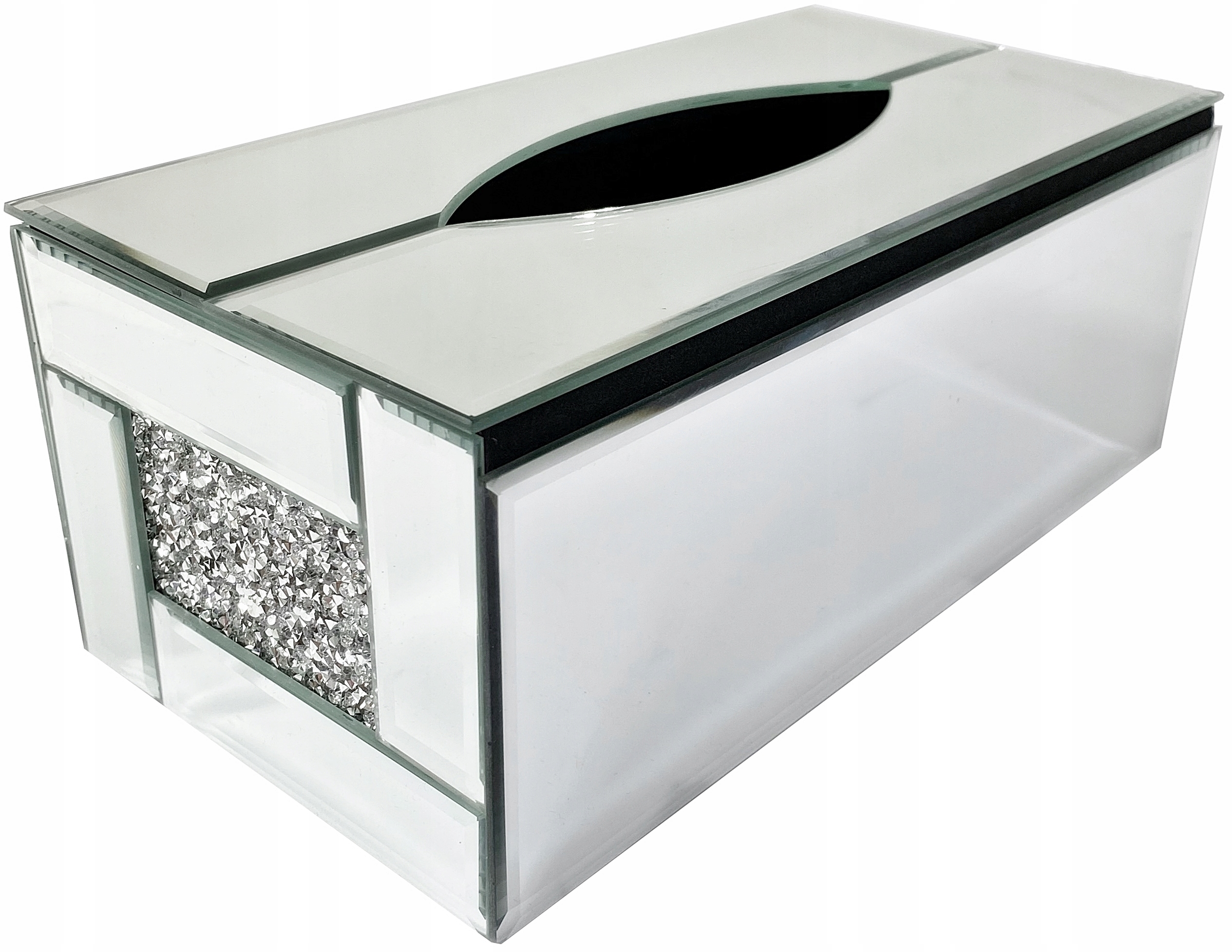 Коробка для салфеток с кристаллами. Дно контейнера пластиковое, внутри бархатное.