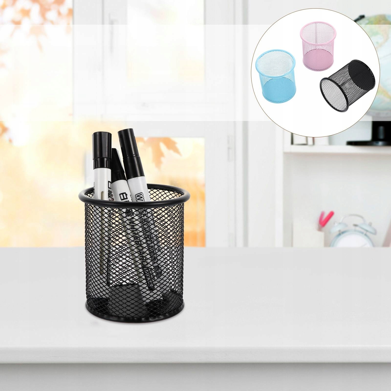 МЕТАЛЛИЧЕСКИЙ КРУГЛЫЙ КОНТЕЙНЕР ДЛЯ РУЧОК, СЕТКА, РАЗНЫЕ ЦВЕТА, 3 ШТ.