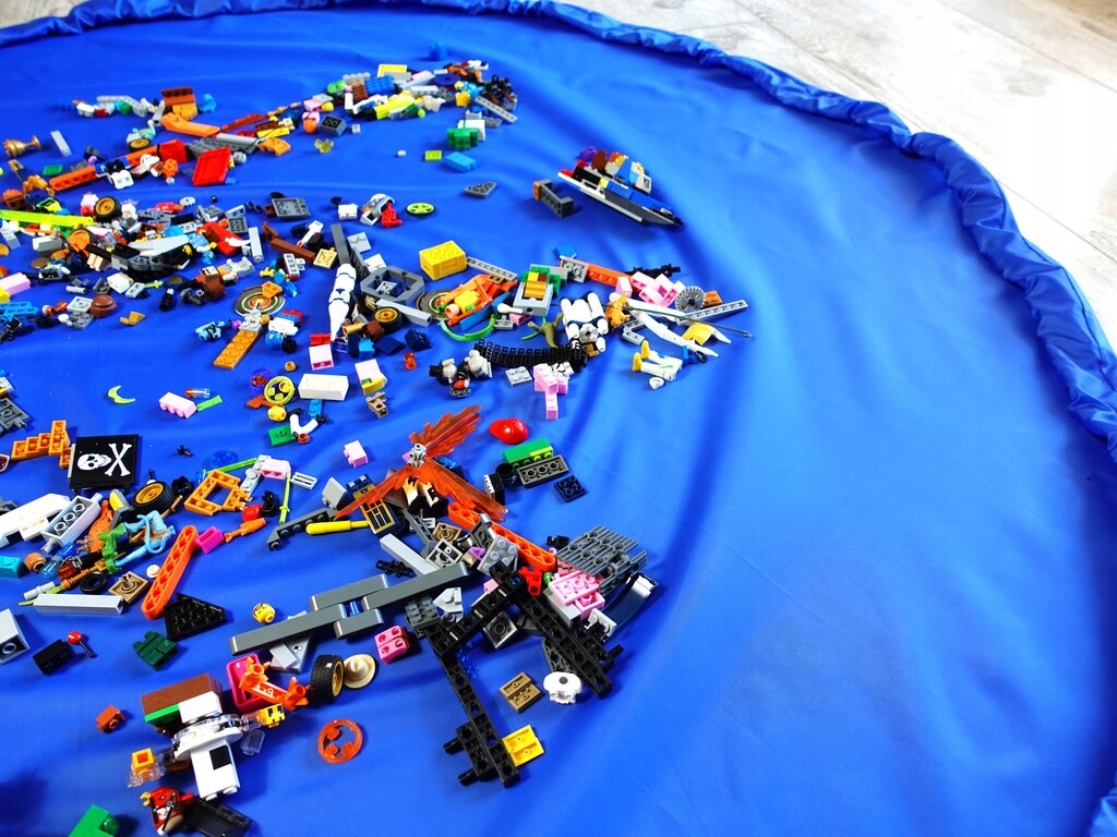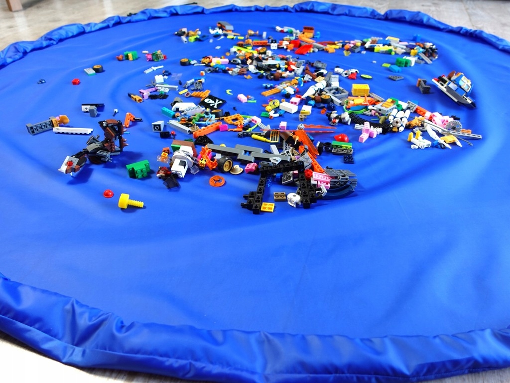 ✅ Складывается в виде игрового коврика, позволяет ребенку играть на чистой поверхности, и после игры просто потяните струны, превращая коврик в мешок, в котором все игрушки будут подходить