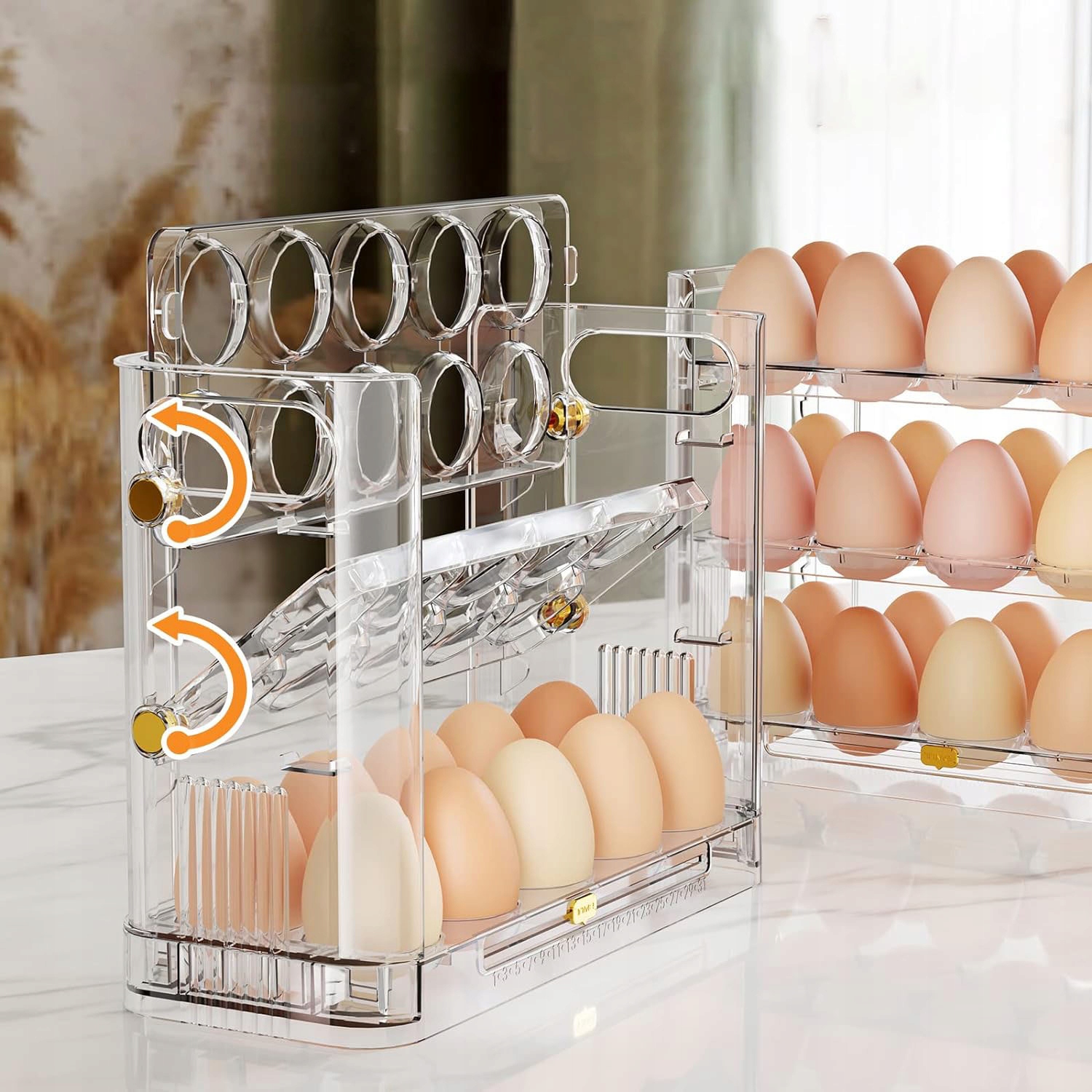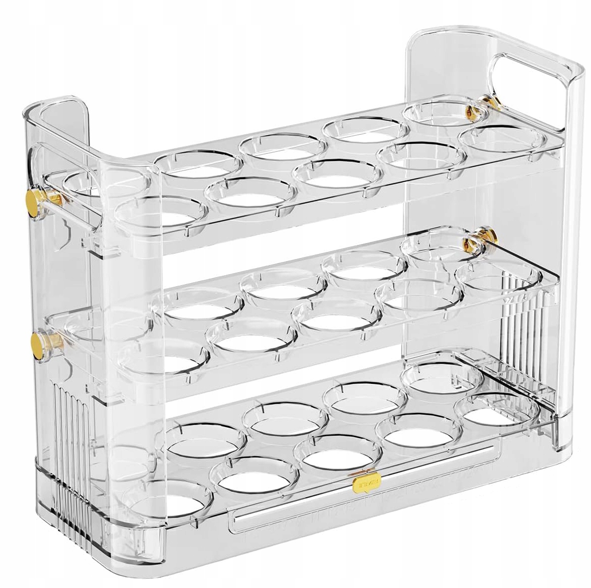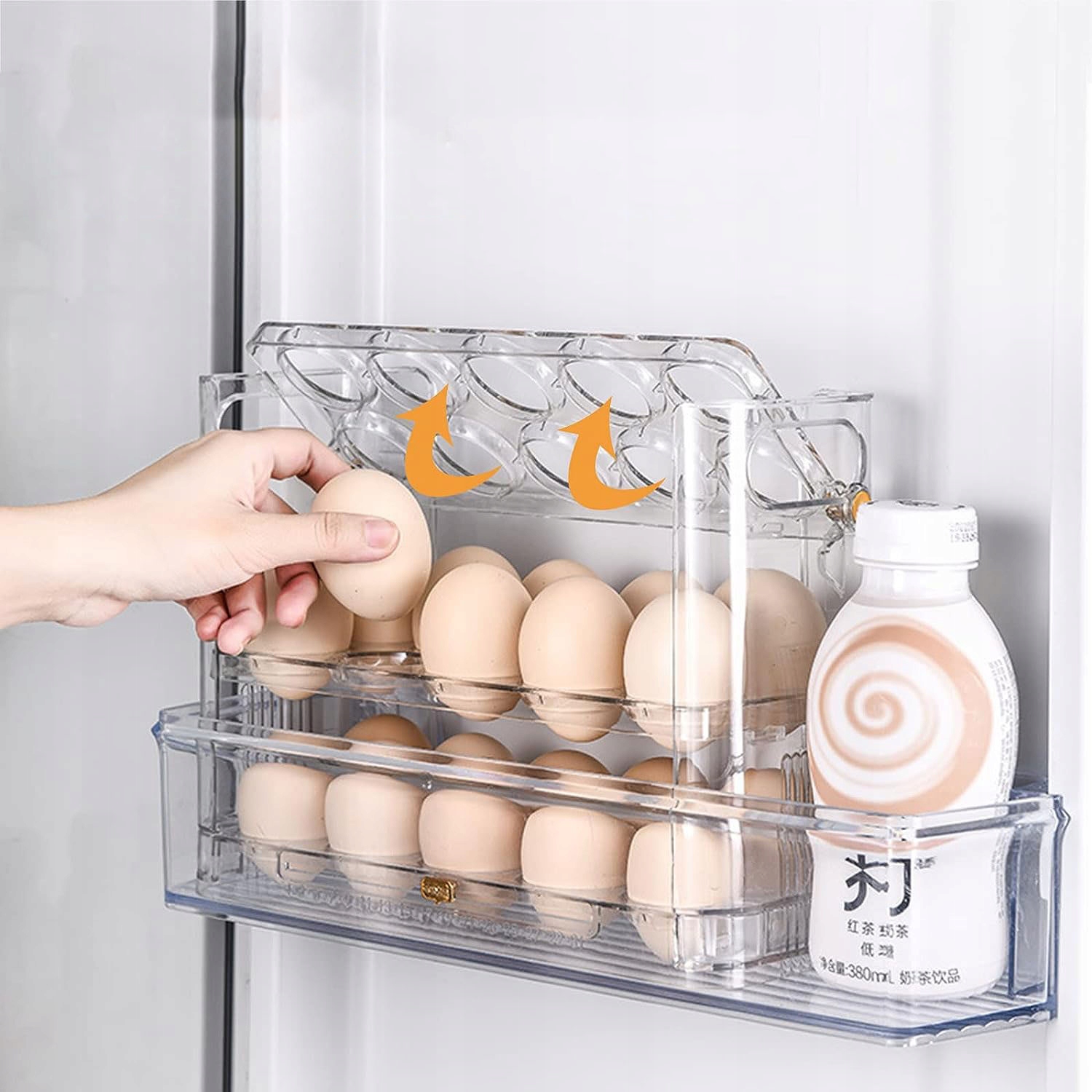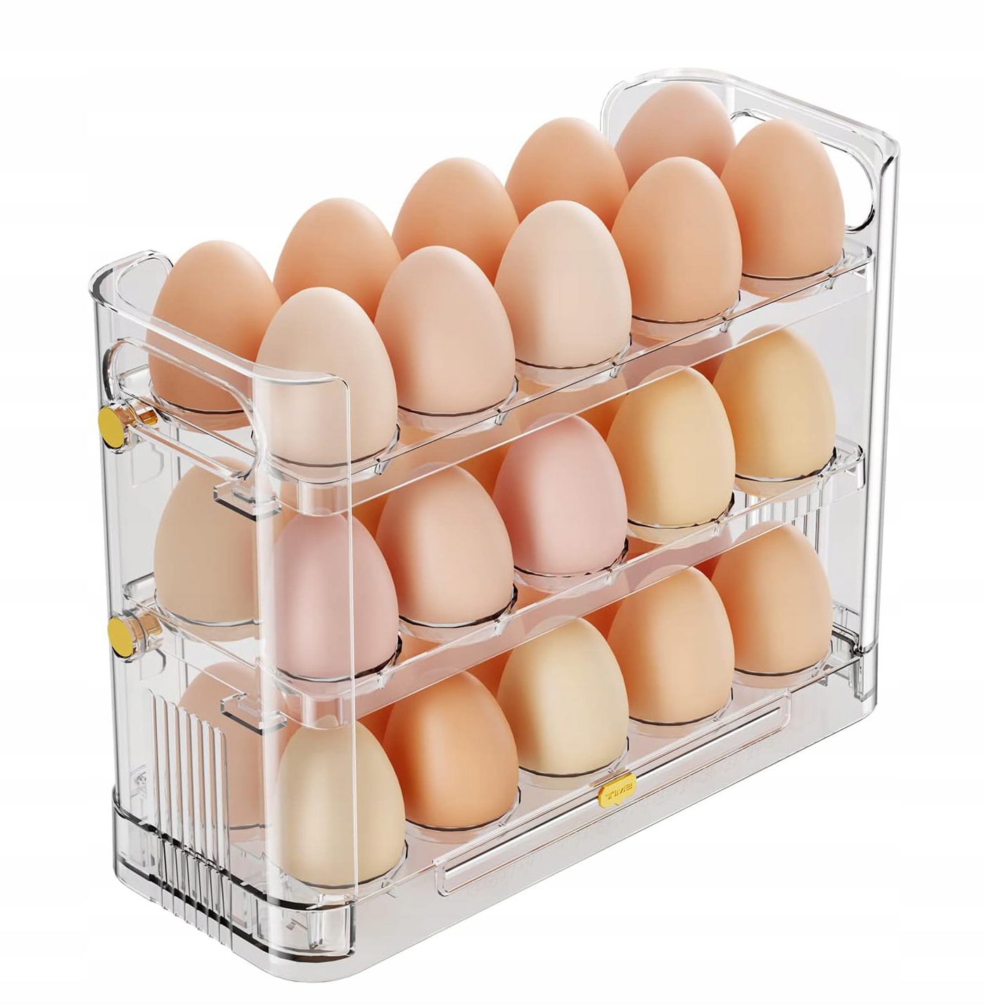 🥚 Этот трехслойный контейнер для яиц в холодильнике, вмещающий 30 яиц, большой вместимости, позволяет полностью использовать все пространство холодильника. Два верхних слоя можно перевернуть, когда каждый слой израсходован, что упрощает переноску и хранение.