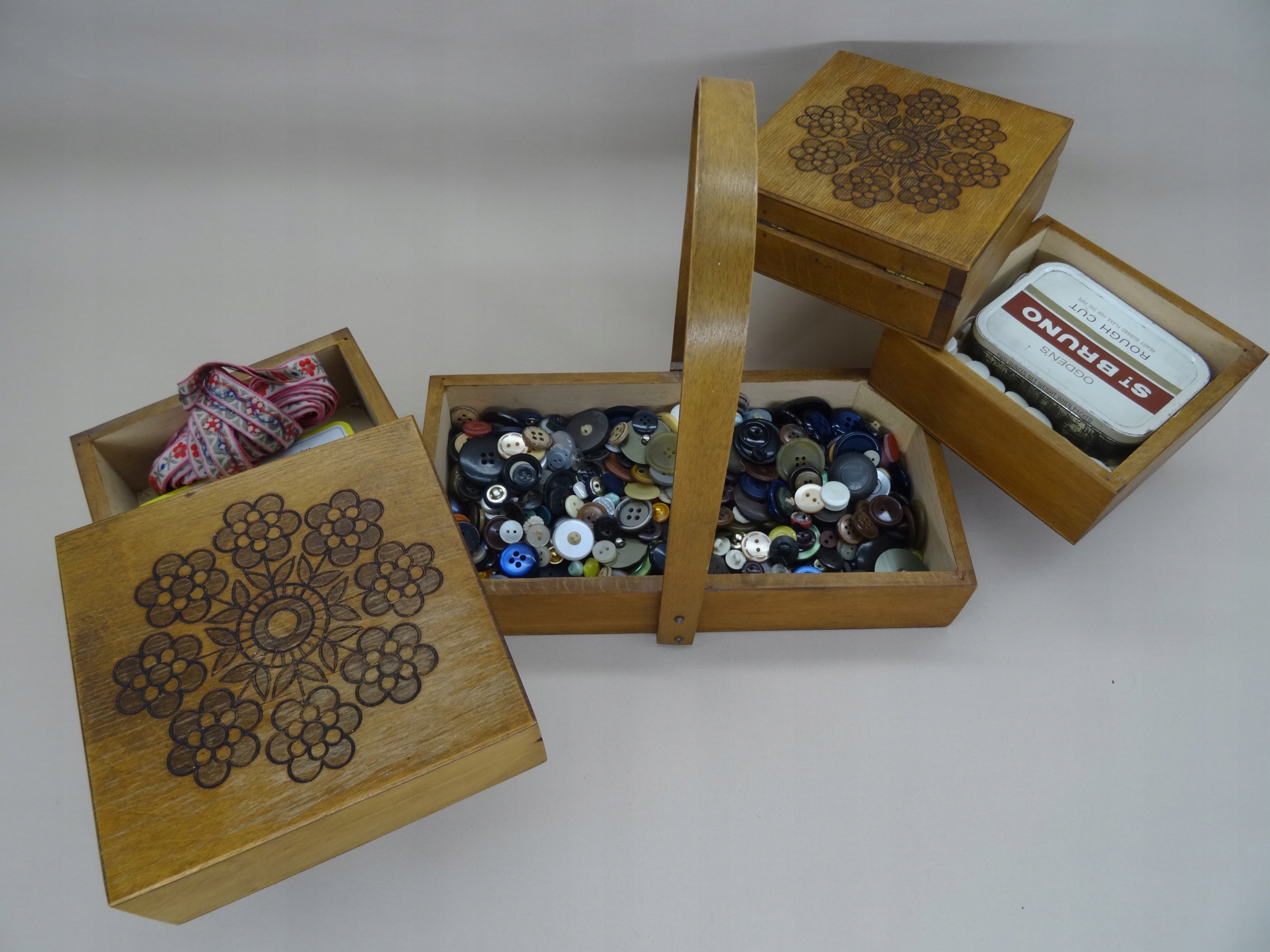 Коробка-контейнер НИКИАК для ниток, пуговиц, кнопок, лент, иголок и т. д. Трехъярусная коробка для ниток с фурнитурой видна на фотографиях.