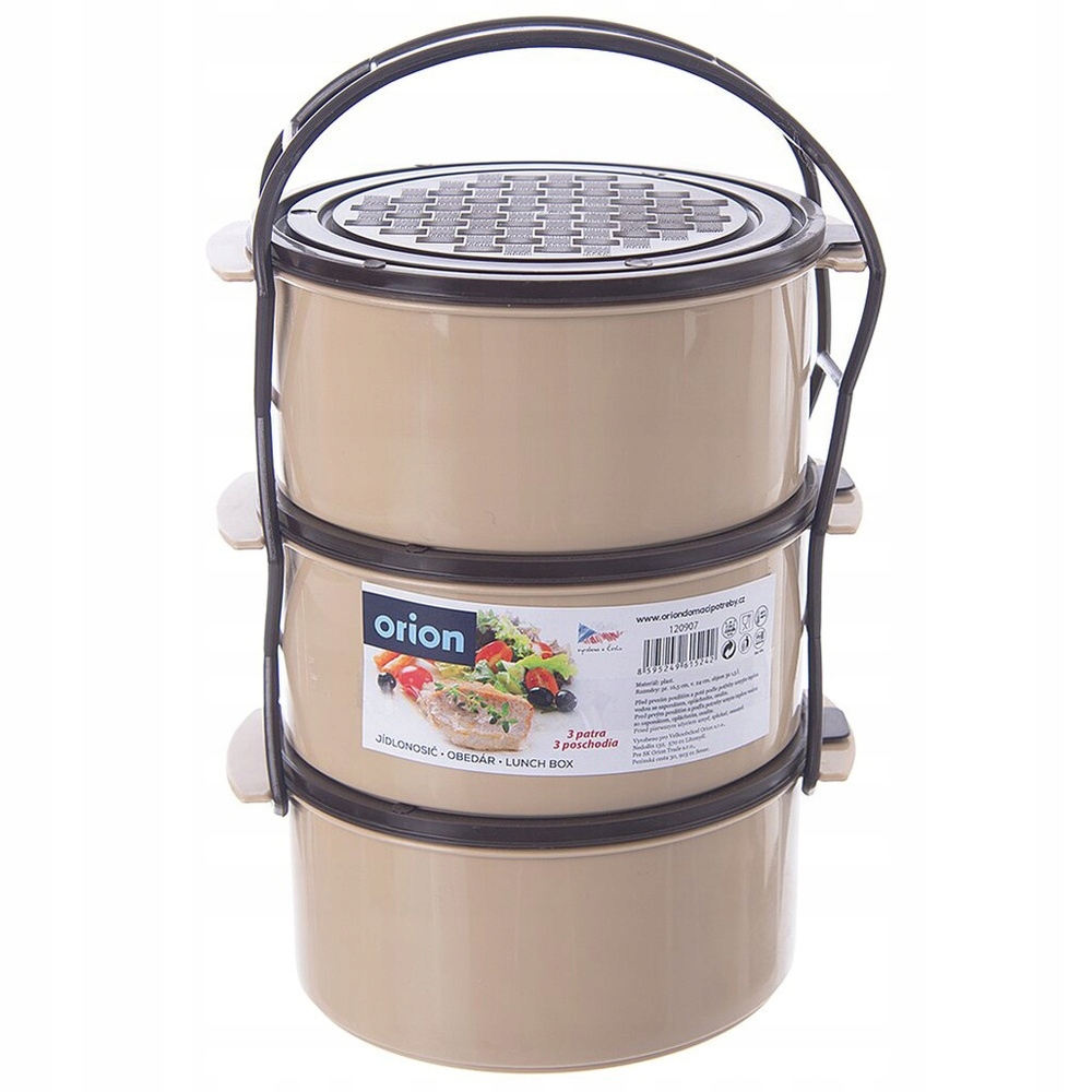 Обеденная столовая для перевозки продуктов питания. Изготовлен из материалов, безопасных для здоровья и пищевых нейтральных. Он имеет три контейнера, которые позволят вам правильно транспортировать еду. Контейнеры соединяются струбциной, поэтому их можно удобно штабелировать. Идеально подходит для пеших прогулок, кемпинга, горных экспедиций и других поездок. Летом мы можем использовать его для хранения и перевозки мороженого, например. во время вечеринок в саду. Оригинальный продукт чешского бренда Orion. Произведен в соответствии с европейскими стандартами.