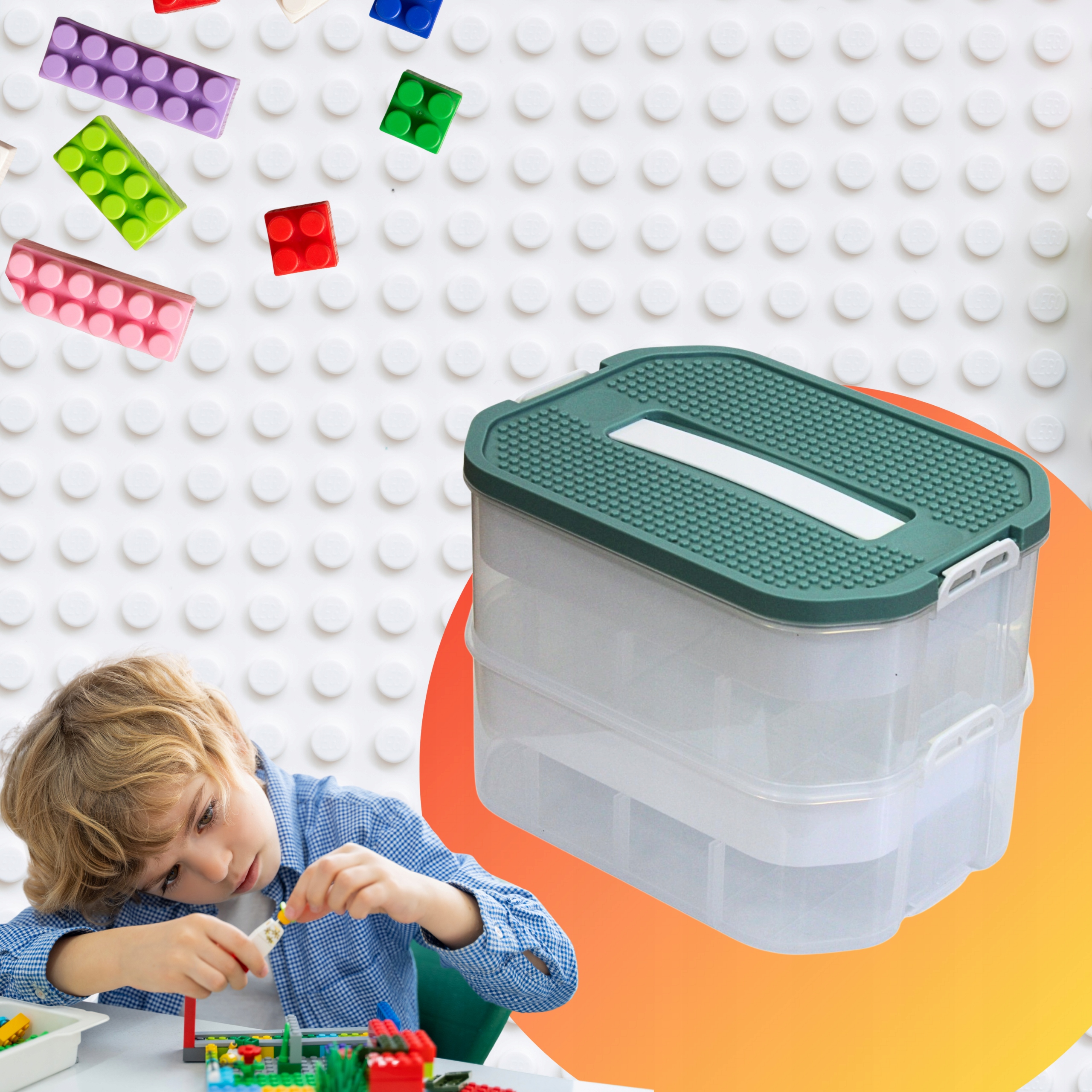 КОНТЕЙНЕР-ОРГАНИЗАТОР ДЛЯ LEGO BRICKS, 2-Х ЭТАЖНЫЙ, С ОТДЕЛЕНИЯМИ, 12 Л.