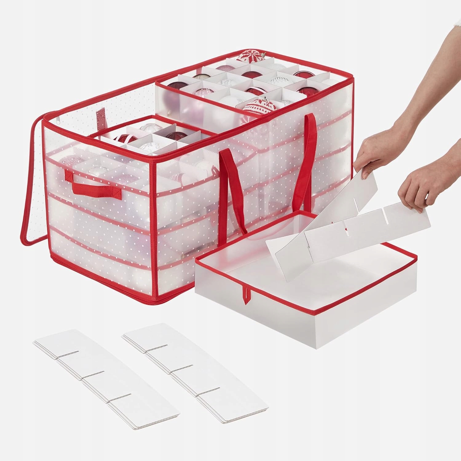 Ящик для хранения, коробочки для рождественских игрушек, рождественские украшения, 128 отделений, регулируемые перегородки, 67 x 34 x 34 см, полупрозрачный красный