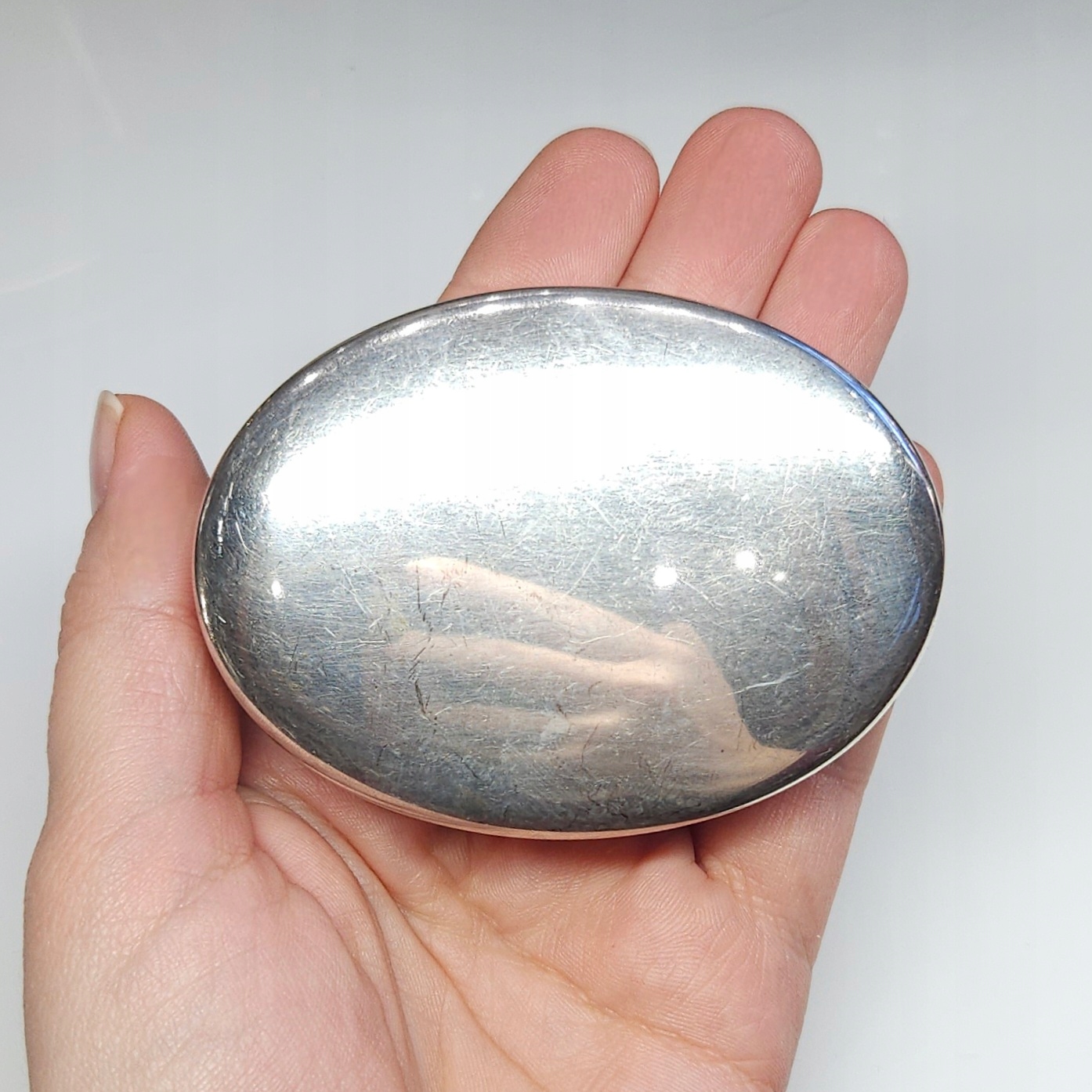 Предмет продажи - серебряная, овальная шкатулка-контейнер с крышкой