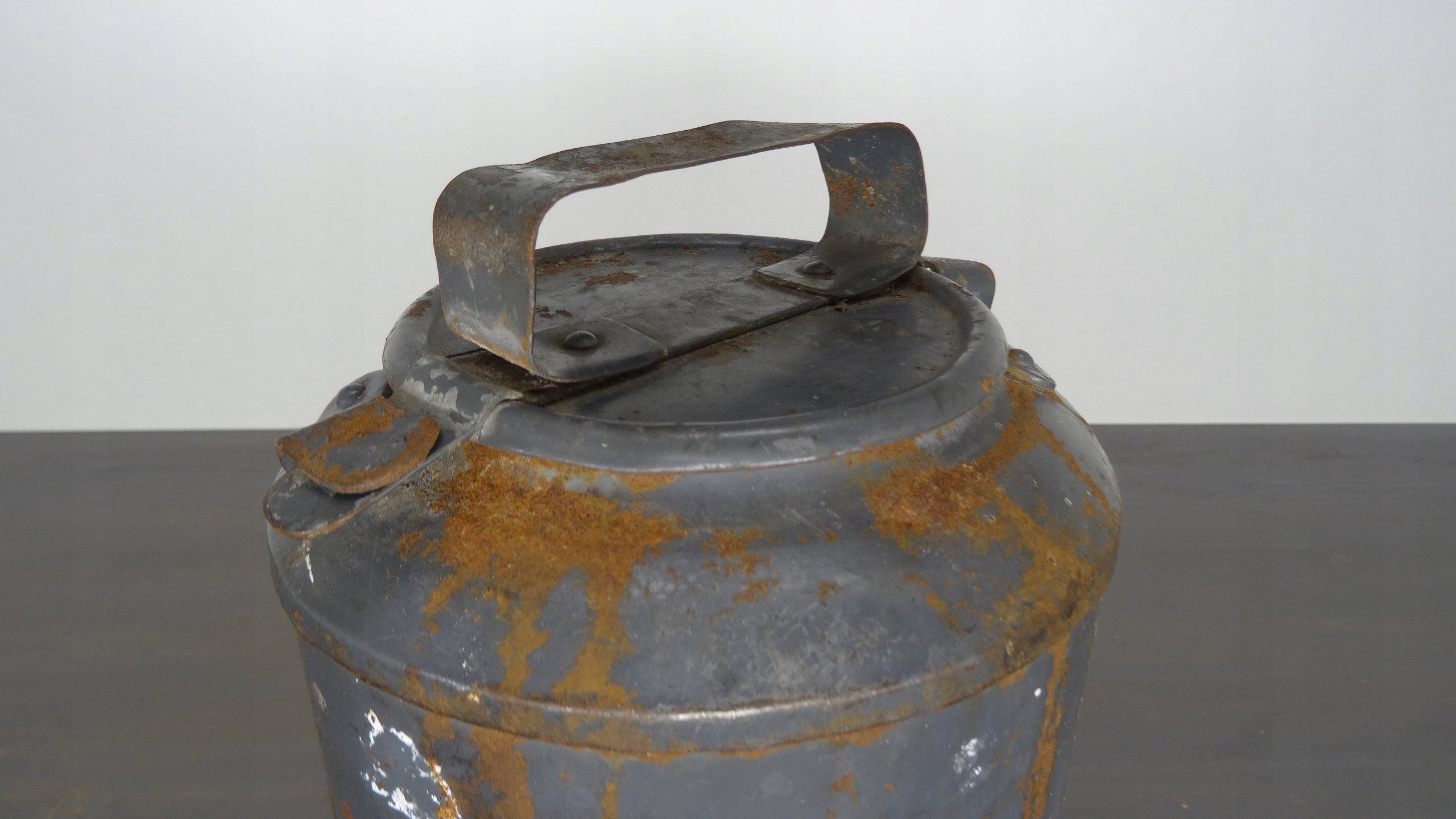 Твердосплавная канистра, используемая на Польских государственных железных дорогах. Карбид на железных дорогах чаще всего использовался в качестве топлива для карбидных ламп. Контейнер из листового железа с окрашенной поверхностью. Контейнер, который сравнительно редко появляется на рынке, в отличие от ламп, которых много.