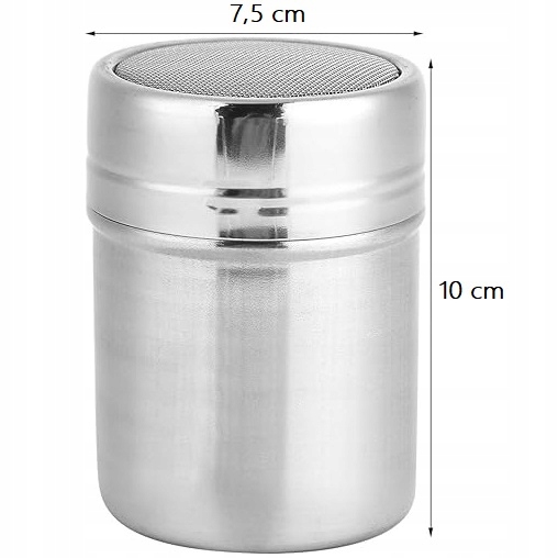 ✅ Полезный b> - контейнер для хранения свободных продуктов с ситом и крышкой. Контейнер имеет емкость 300 мл и диаметр 7,5 см. Благодаря этому он идеально подходит для добычи сахарного пудры, какао, шоколада, кофе, брызги или корицы. Это также может заменить кондитерскую. В кафе контейнер будет использоваться для размещения корицы, шоколада для дозы кофе, которые будут диверсифицировать его вкус. Закрытая крышка будет защищать хранимые продукты от влаги и позволит им дольше сохранять свой аромат. Благодаря крышке, влага не попадет в контейнер. Изготовлен из высококачественной нержавеющей стали и прозрачной пластиковой крышки. Контейнер оснащен плотным ситечком, поэтому он отлично подходит для добычи добавок кофе или десертов в виде какао, шоколада, корицы, специй, сахарных пудров. Мы также будем использовать его в качестве кондиционера, чтобы легко выпустить сахар или сахарную пудру. Закрытая крышка будет защищать сохраненные аксессуары или специи от влаги и позволит вам дольше сохранять аромат сохраненных свободных продуктов. (G): 120