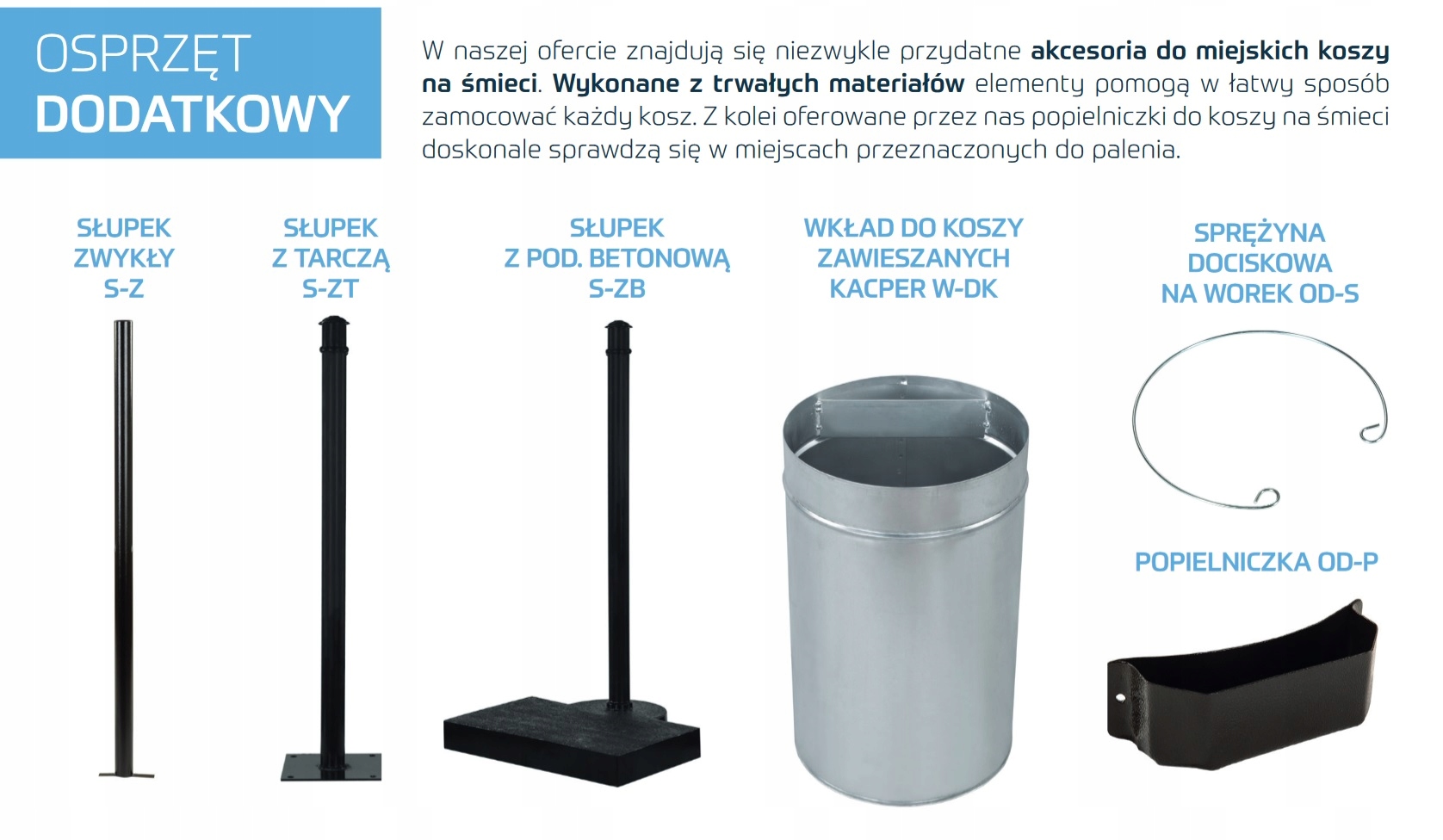 Компания AKPOL PLUS s.c. Кароль Анджеевски, Норберт Анджеевски – известный и уважаемый производитель корзин и малой городской архитектуры, продукцию которого можно найти по всей стране. Многолетний опыт и сотрудничество с коммунальными предприятиями делают предлагаемые нами мусорные баки отличными качеством и функциональностью. Эти корзины изготовлены из материалов высочайшего качества, что делает их не только эстетичными, но также прочными и надежными, что гарантирует долгий срок службы.