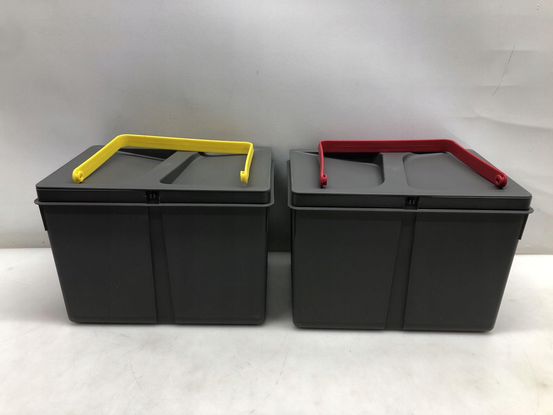 ведра имеют красочные ручки, чтобы облегчить сегрегацию мусора и удалять их, чтобы опустошать и чистить. антрацит-серые.
